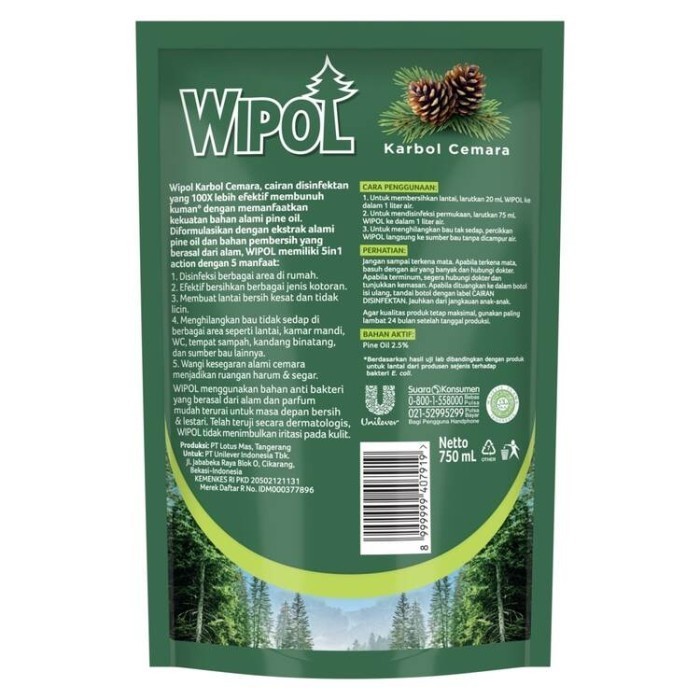 WIPOL KARBOL CEMARA 1 DUS 750ml x 12 Pcs | KARBOL WIPOL 750ml | 1 KARTON WIPOL KARBOL 750ML ISI 12