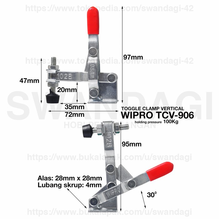 WIPRO Toggle Clamp TOGLE TOGEL KLEM Vertical TCV 906 100 KG