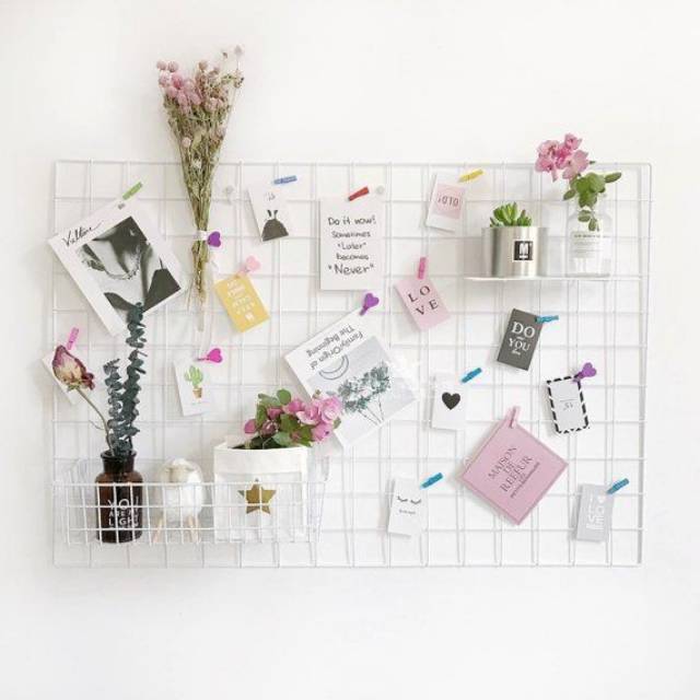 WIRE GRID HITAM dan PUTIH - Hijang Hiasan Dinding Panjang Metal Mesh Frame Photo