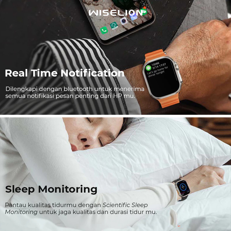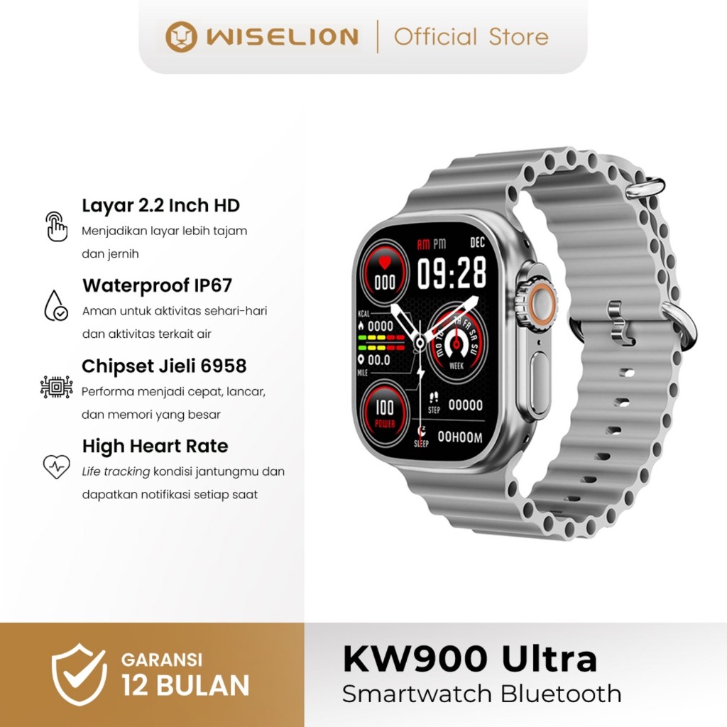 WISELION Smartwatch KW900 Ultra Jam Tangan Pintar dengan Pemantauan Kesehatan & Aktivitas Lengkap