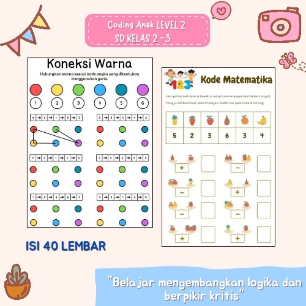 WORKSHEET ANAK| LEMBAR AKTIVITAS CODING LEVEL 2 ANAK| KERTAS HVS A5 DGN KETEBALAN SESUAI| BELAJAR TANPA GADGET BELAJAR LOGIKA DAN BERPIKIR KRITIS TANPA LAYAR