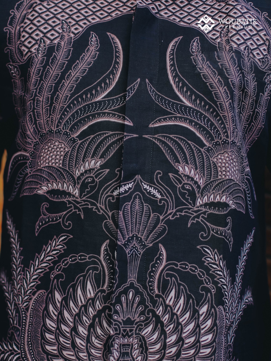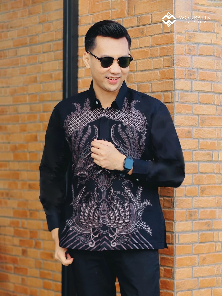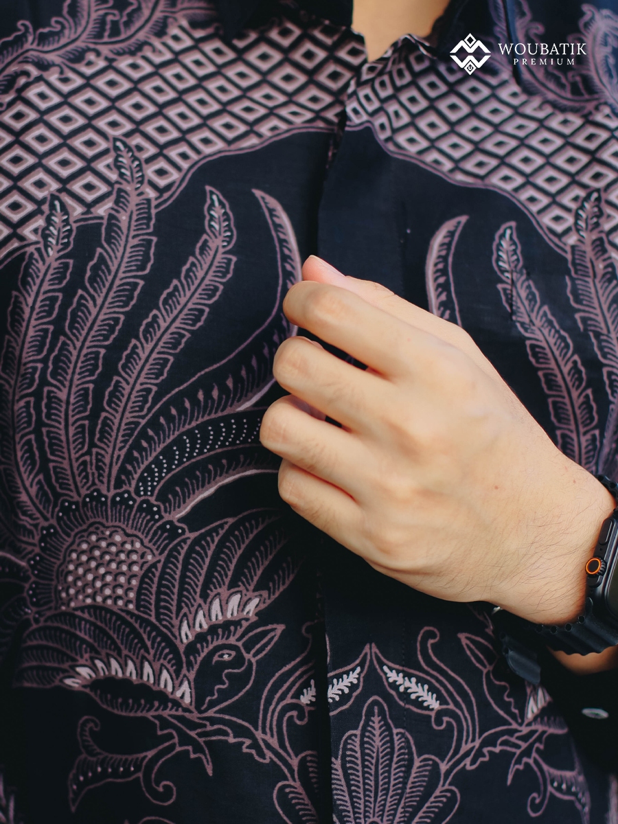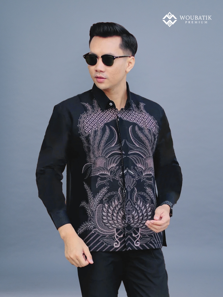 WOUBATIK - Kemeja Batik Pria Furing lengan Panjang Slimfit Warna hitam Motif sogan Modern Premium KP 323