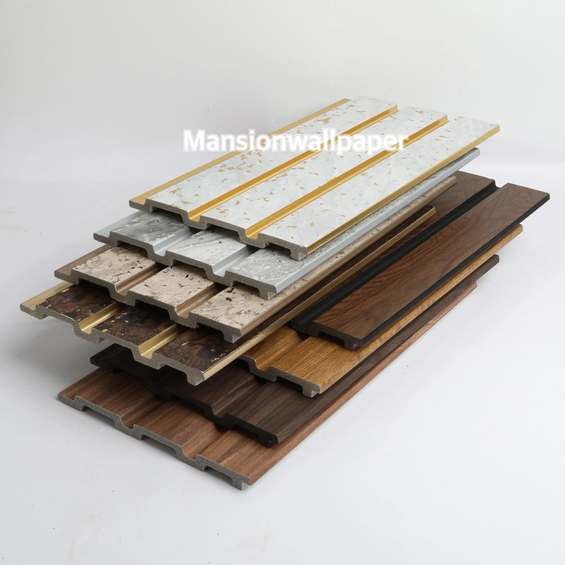 WPC Wallpanel Kayu List Kombinasi Warna Gold Silver Abu Hitam Coklat Kayu Dekorasi Interior