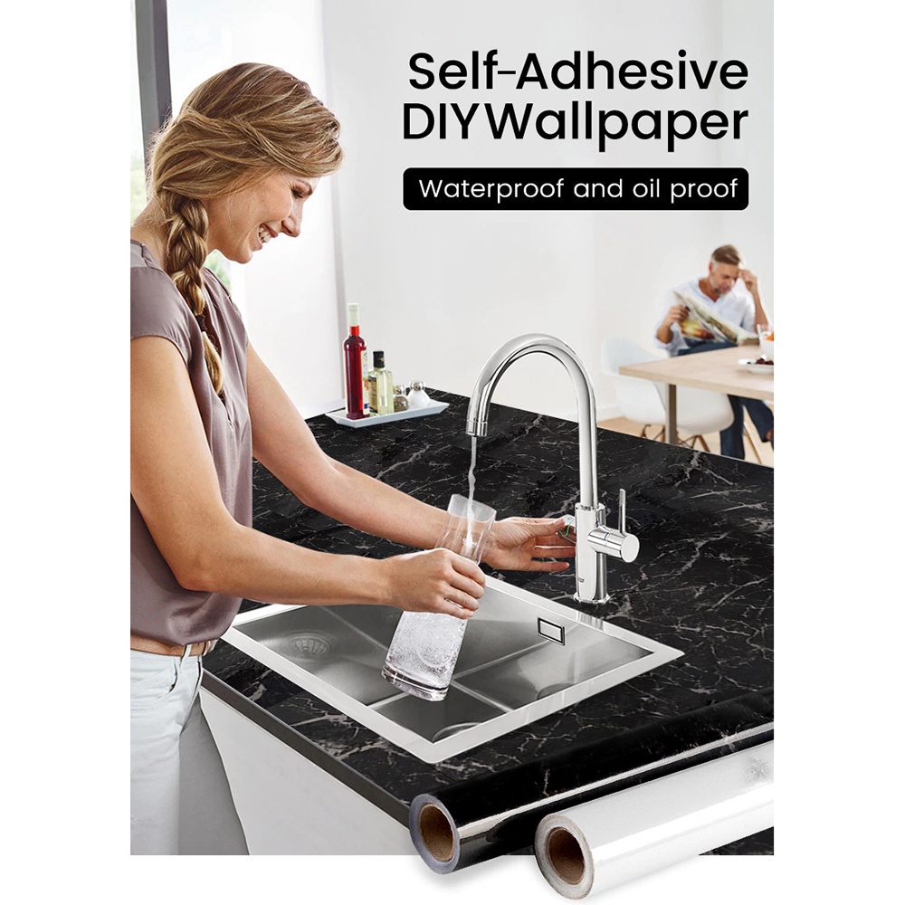 WS2 Dicor Sticker Wallpaper Meja Dinding Dapur Anti Minyak Waterproof 1 Meter wallpaper marble glossy/wallpaper dinding/sticker dinding/wallpaper glossy Wallpaper Sticker Motif Marmer Anti Air 60cm x 3meter AMT