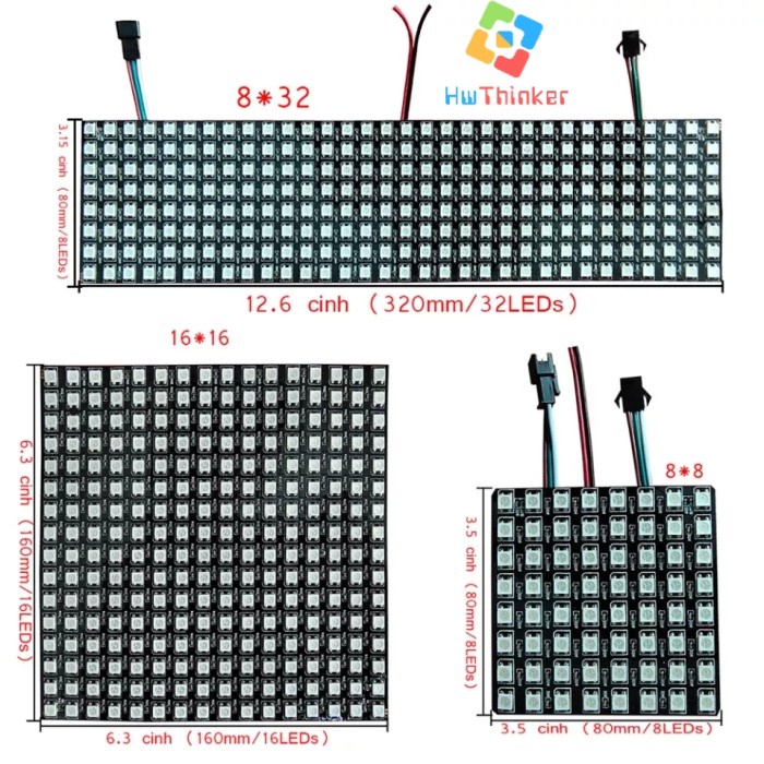 WS2812B 8x8 8x32 16x16 Matrix 5V Flexible Panel Light LED RGB Ws2812
