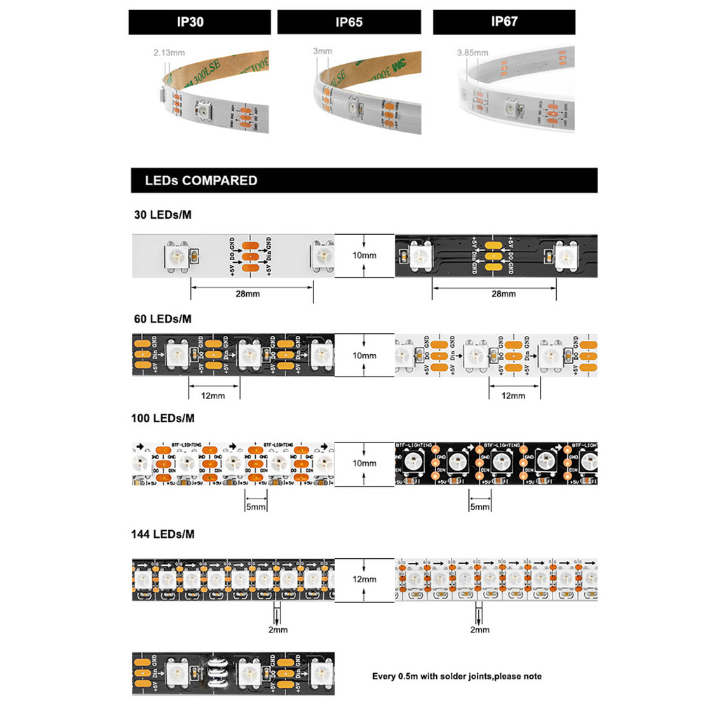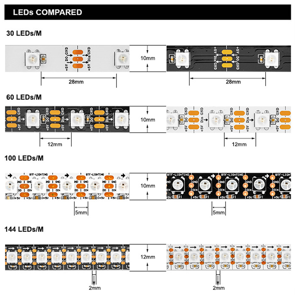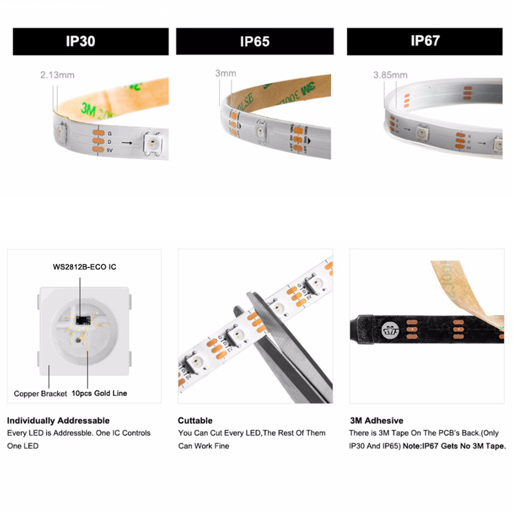 WS2812B LED Strip Light WS2812 RGB IC Individually Addressable 30 60 100 144 Pixels LEDs/m TV Backlight Black White PCB ECO DC5V