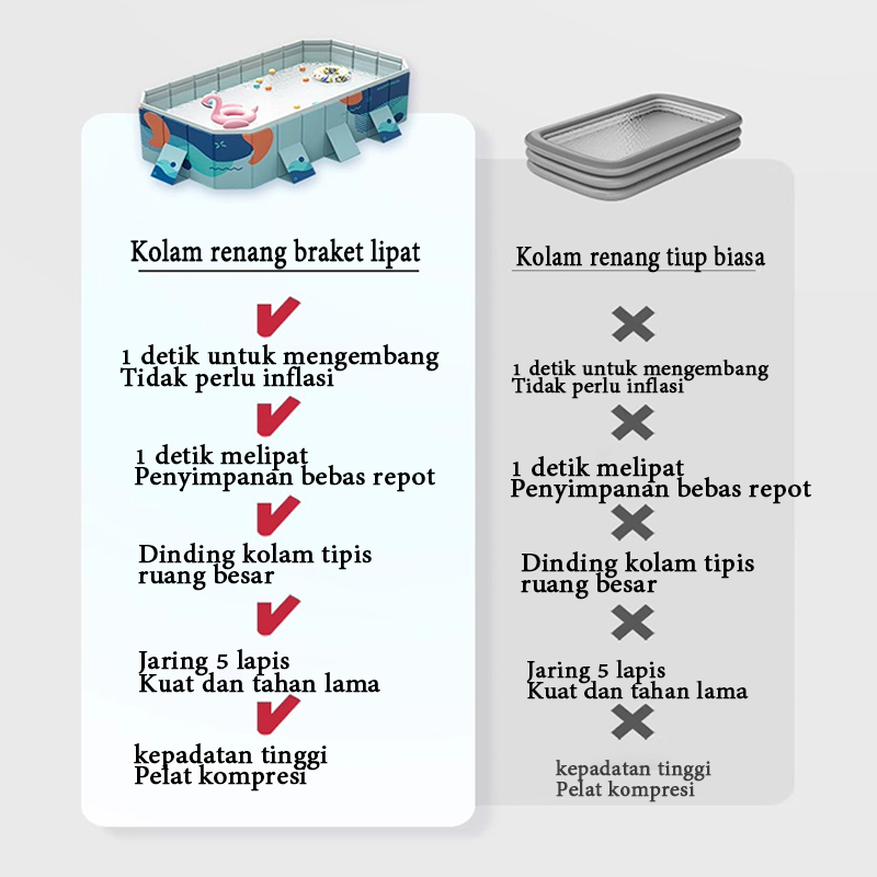 WTHB Outdoor Kolam Lipat Jumbo Kolam Portabel 3 Meter Lipat Kolam Renang Bayi cocok untuk 1-10 orang anak Bukan tiup