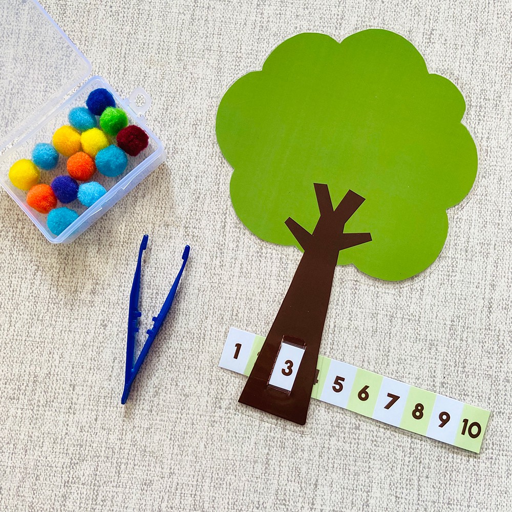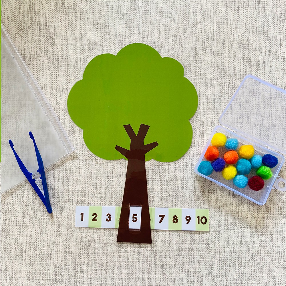 WUFFYLAND Berhitung Pohon Pompom Permainan Pra Matematika dan Sensori Untuk Anak