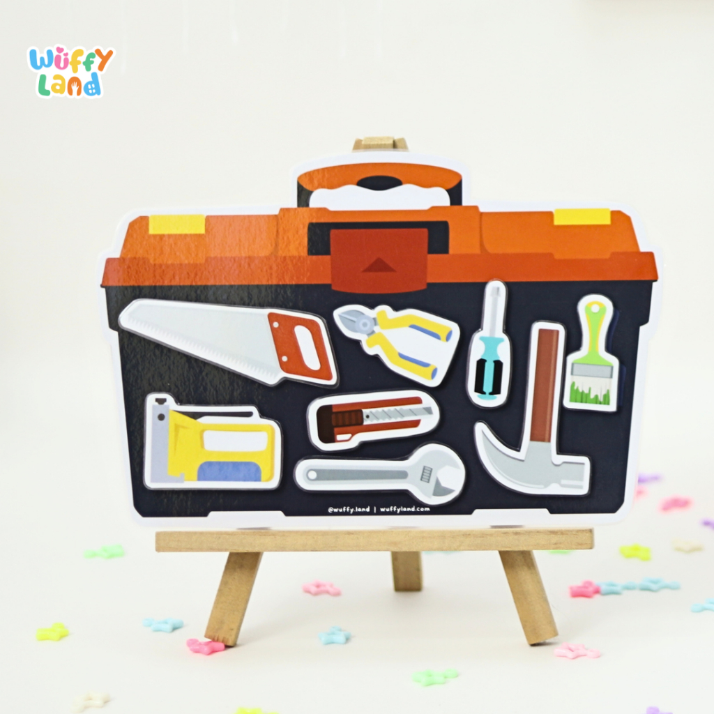 Busy Page Mengenal Isi Tas Aneka Profesi Dengan Magnet Untuk Anak Tema Dokter, Alat Pertukangan, Koper, dan Tas Sekolah
