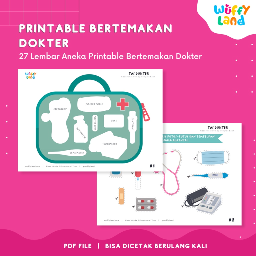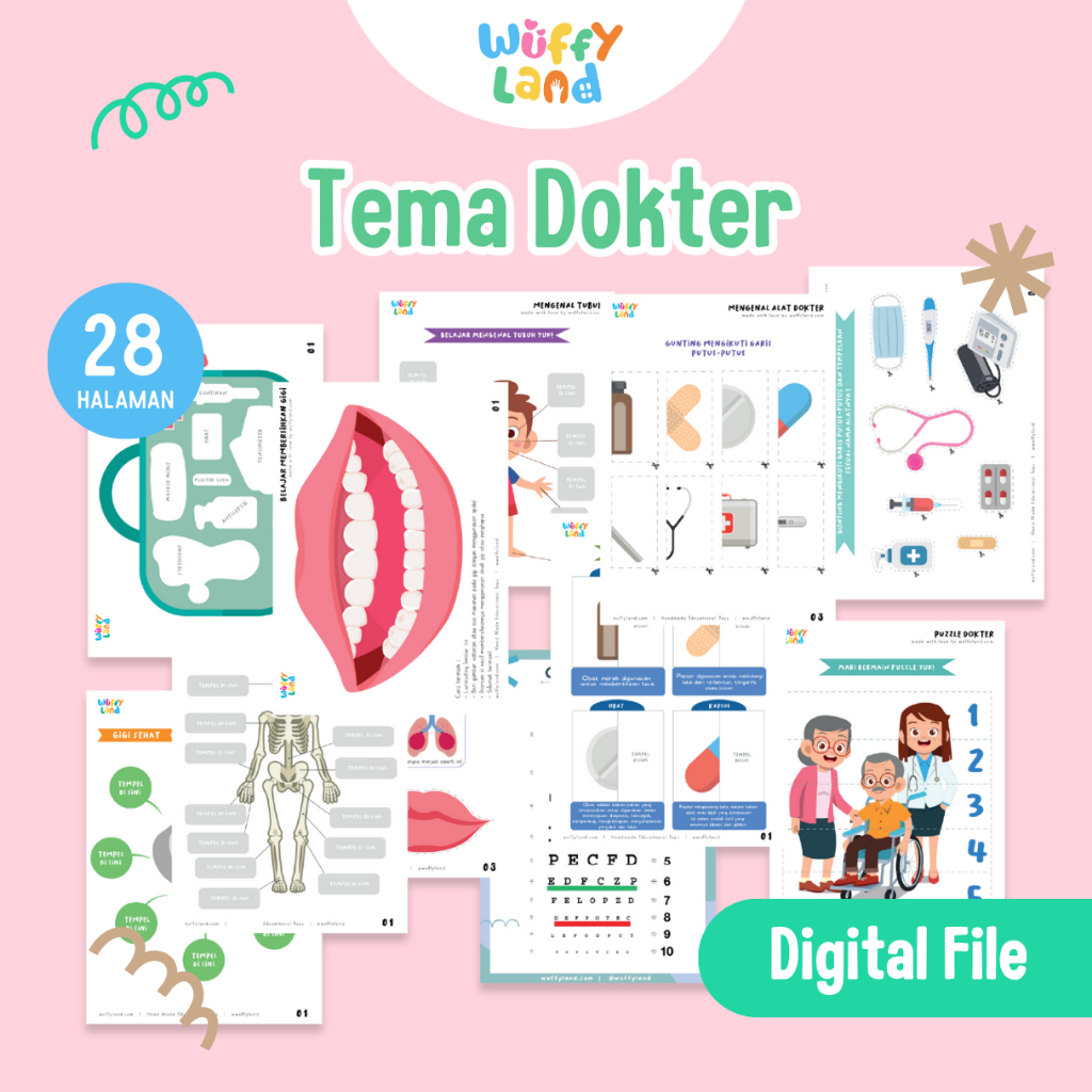 WUFFYLAND PDF Worksheet Tema Dokter Dunia Medis 28 Aktivitas Mengunting Menempel Usia 3 4 5 Tahun