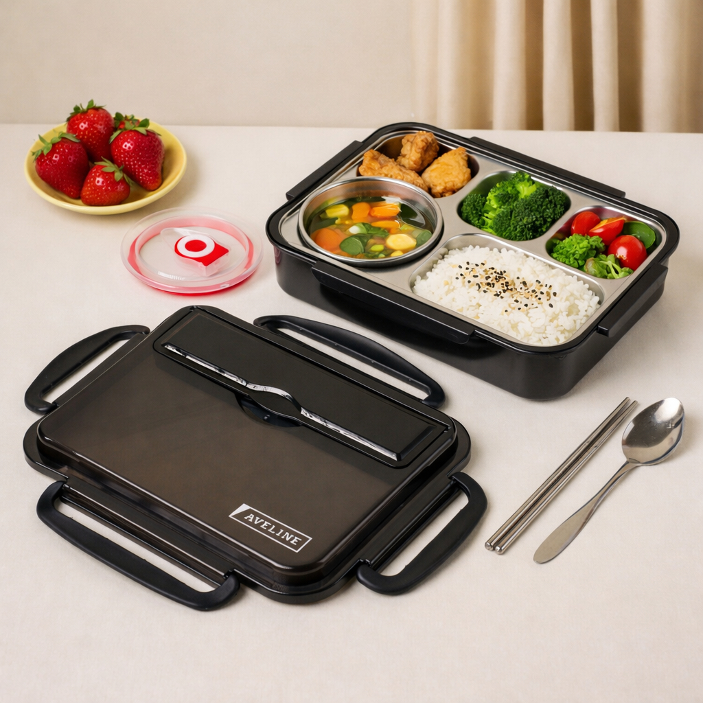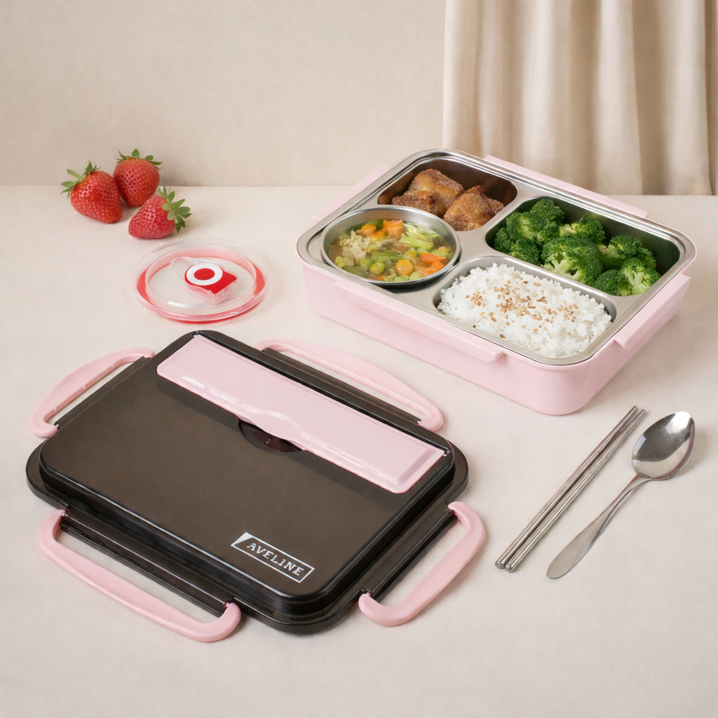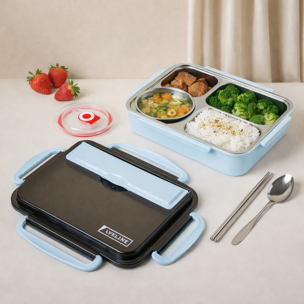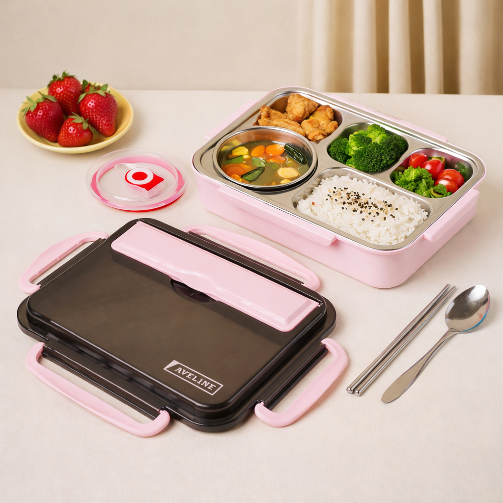 WweiShop Lunch Box Kotak Makan 3 Sekat 4 Sekat Dan 5 Sekat Stainless / Lunch Box Stainless Tahan Panas Dan Anti Tumpah