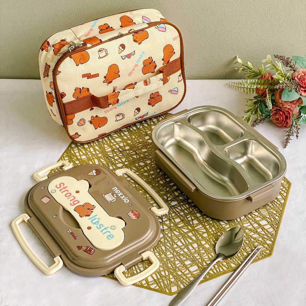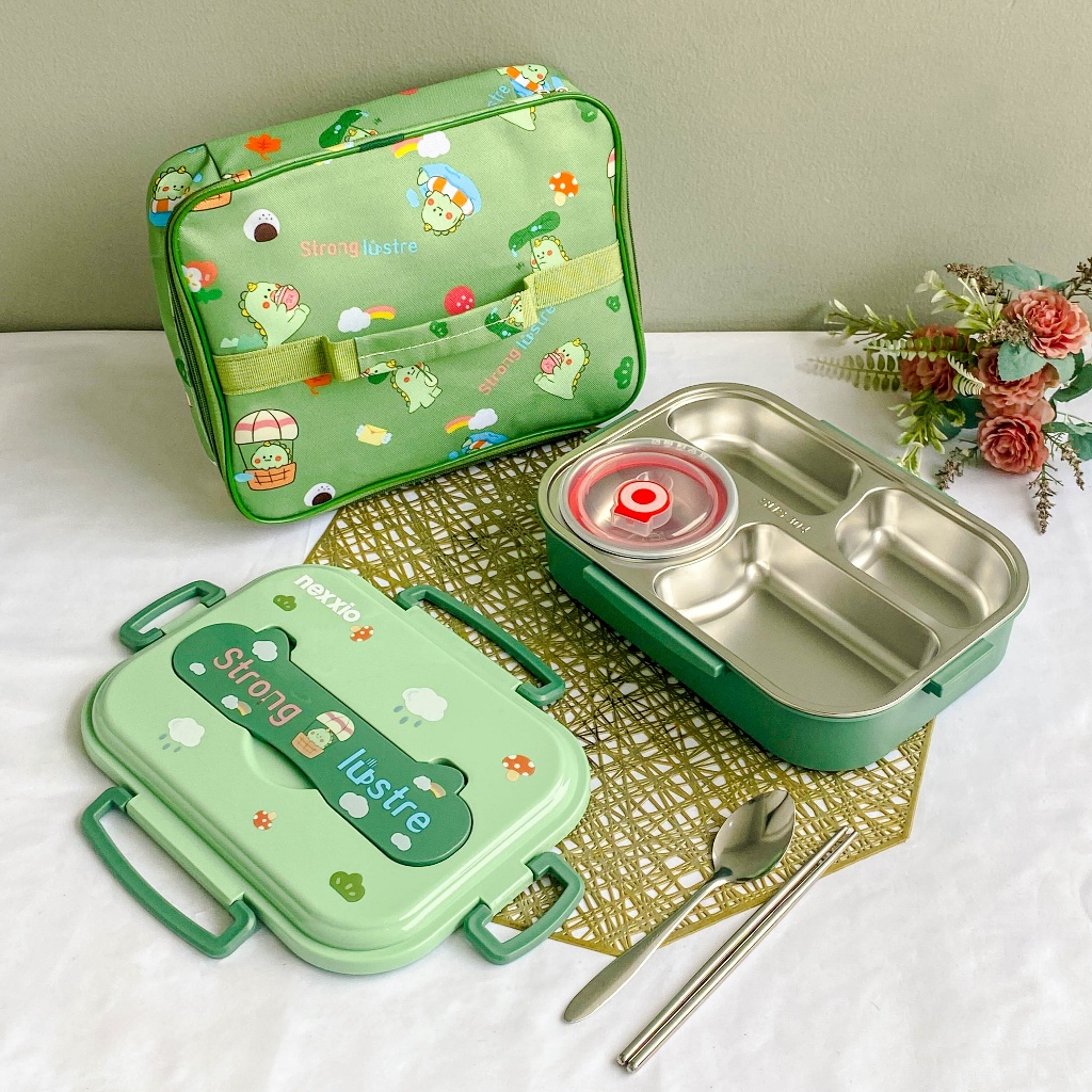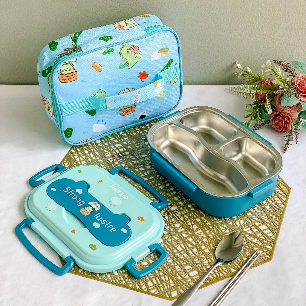 WweiShop Lunch Box Kotak Makan 3 Sekat 4 Sekat Stainless Steel / Set Alat Makan Anak Stainless / Kotak Makan Stainless Anak / Lunch Box Anti Tumpah Anak