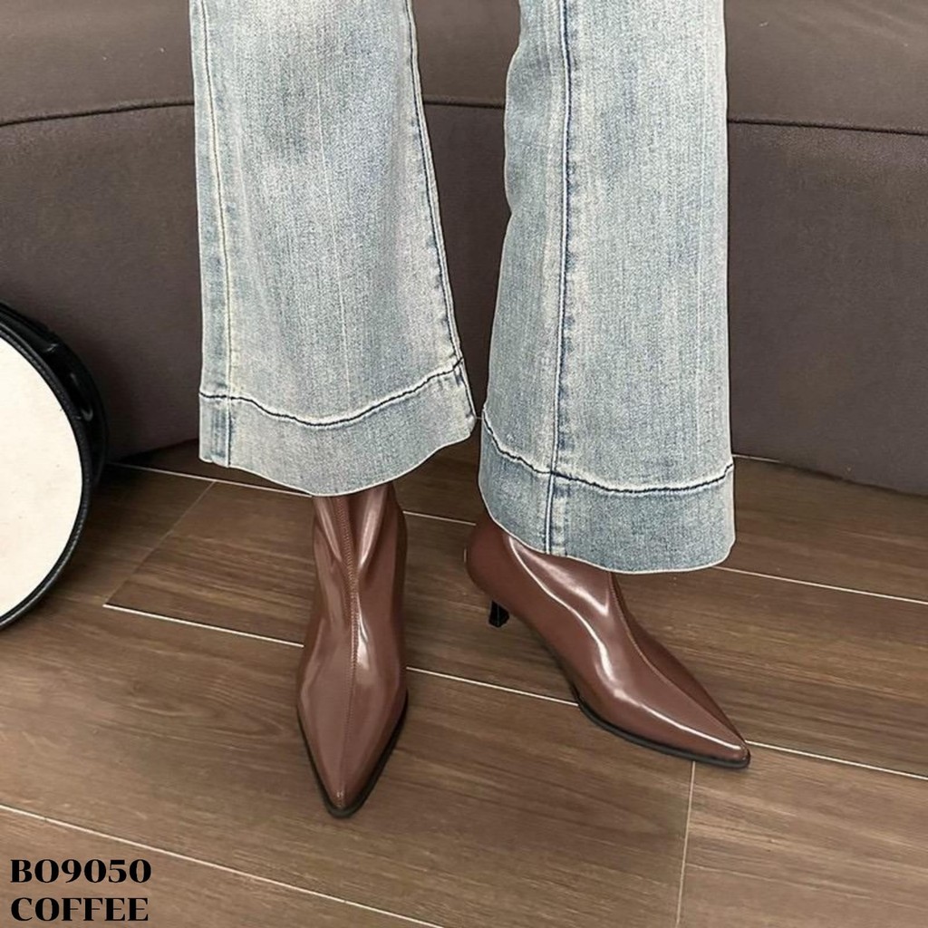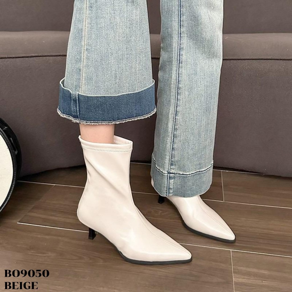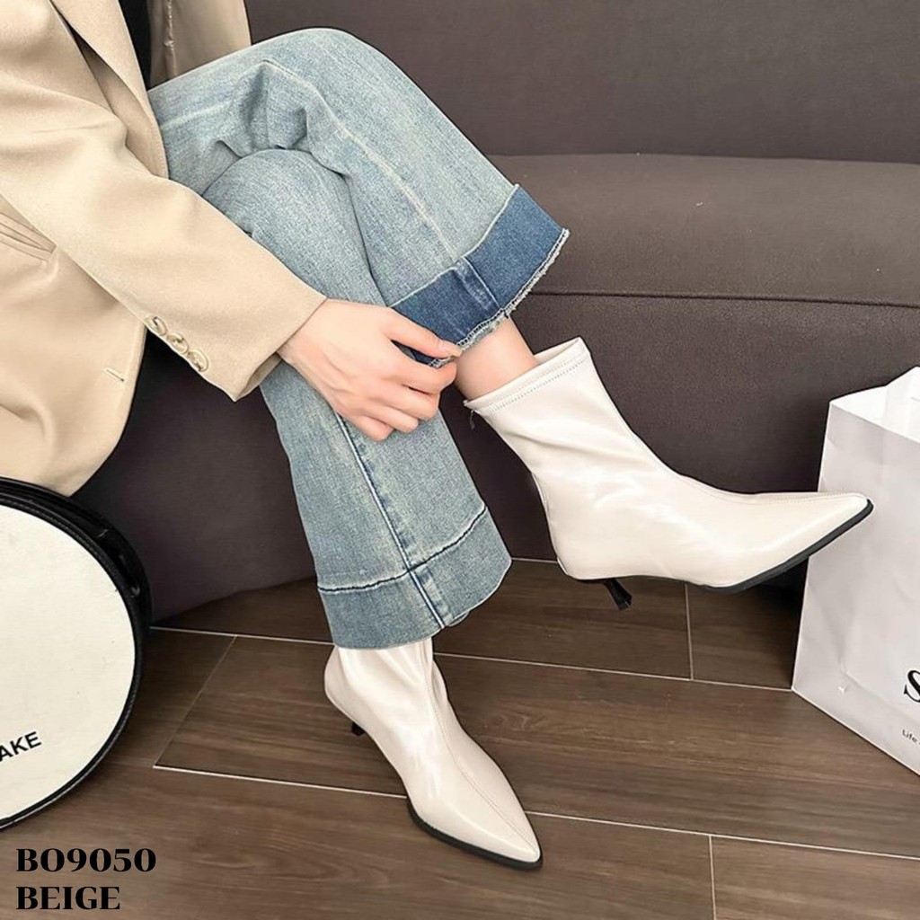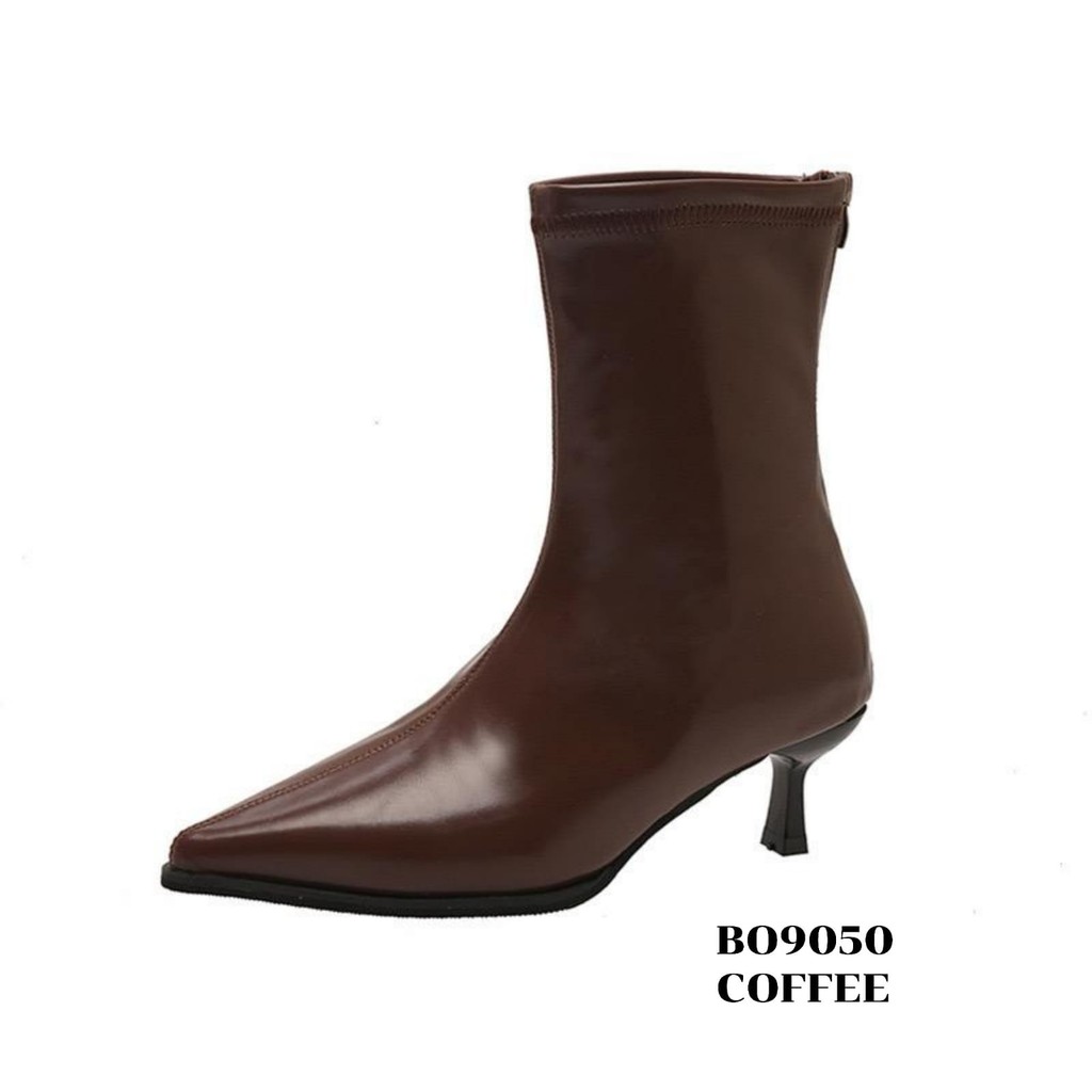 WYN Sepatu Heels Boots Tinggi 5.5Cm Beige Black Coffee Uk 36-40 Sandal Wanita ala Korea style Kulit Sintetis BO9050