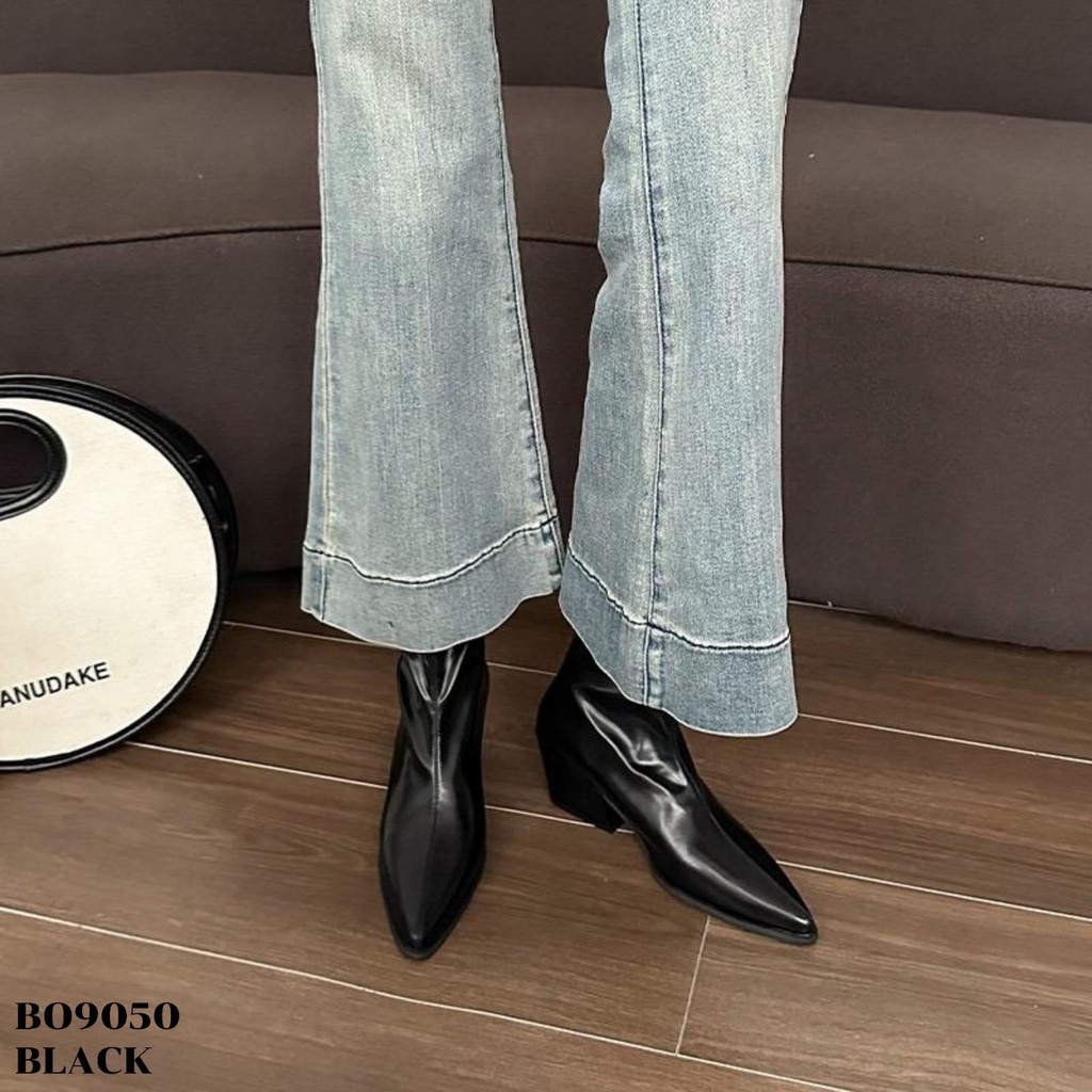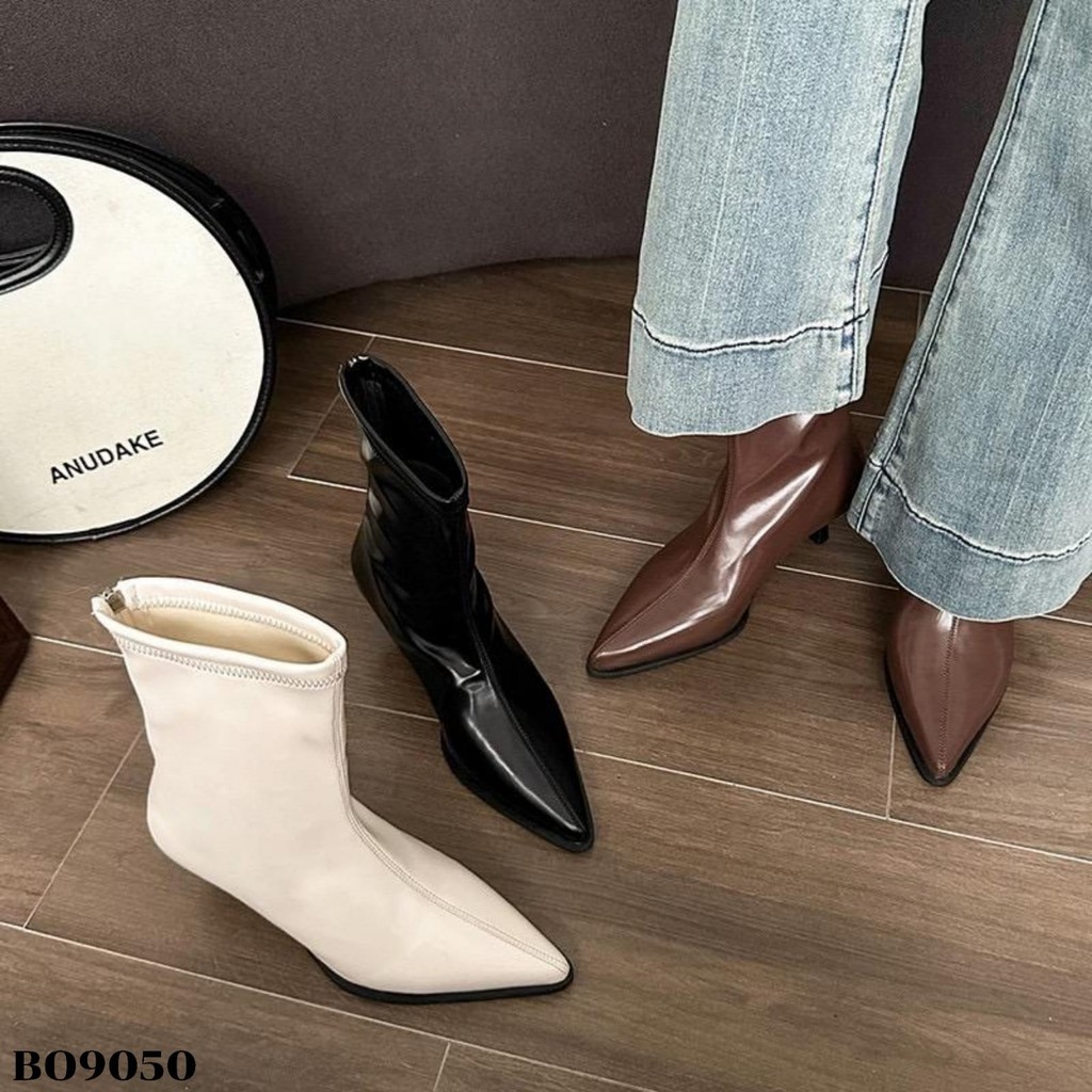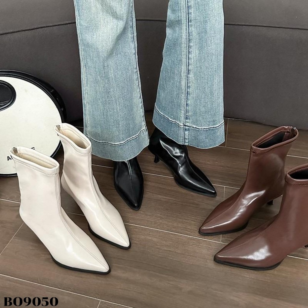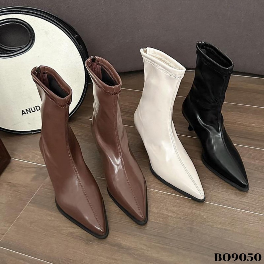 WYN Sepatu Heels Boots Tinggi 5.5Cm Beige Black Coffee Uk 36-40 Sandal Wanita ala Korea style Kulit Sintetis BO9050