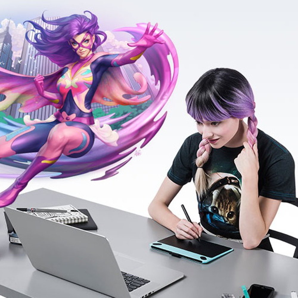 Wacom Intuos Comic Blue CTH490 Pen Tablet Alat Desain Grafis Biru CO1606 CN Comp