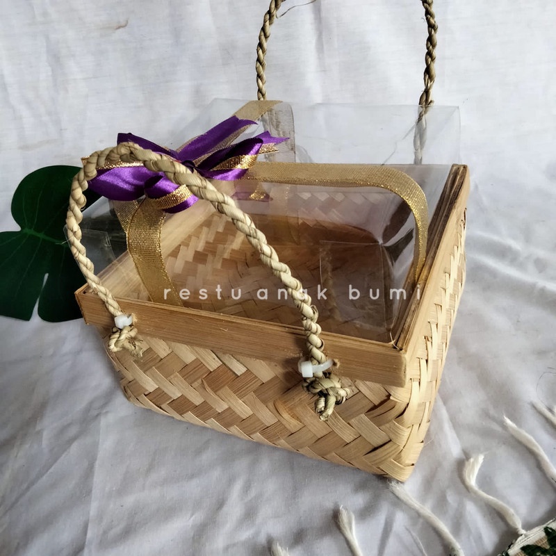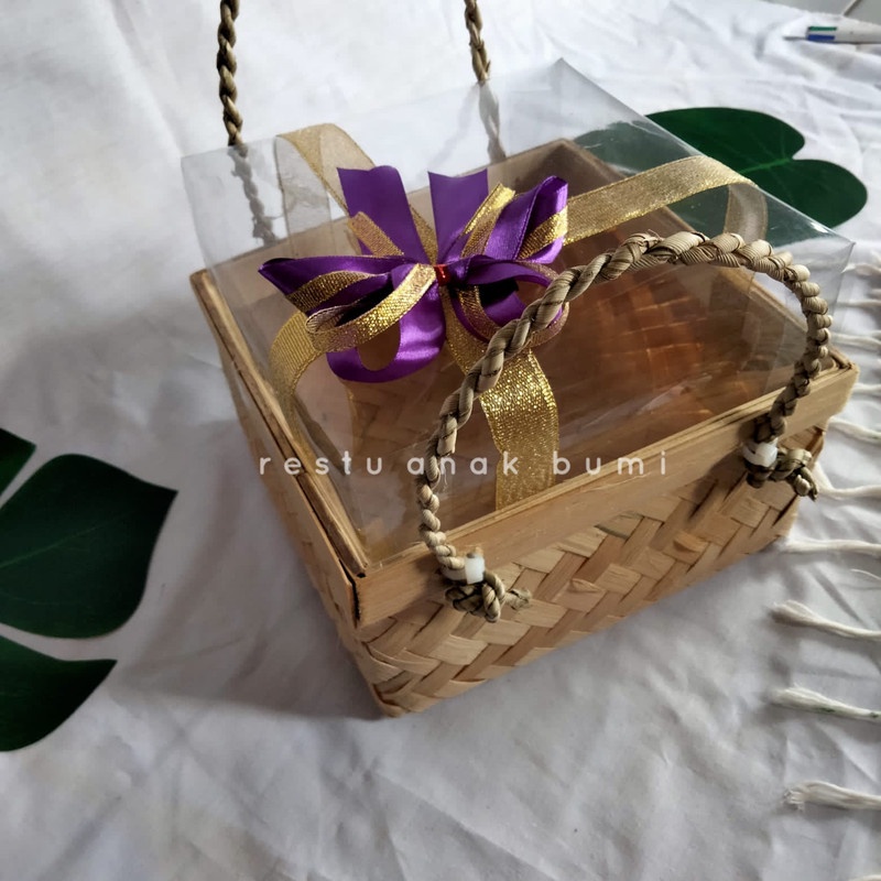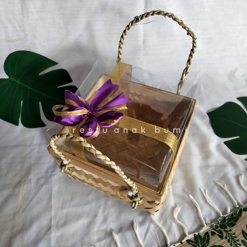 Wadah Besek Bingkisan 22x22/hantaran/nikahan/seserahan/hampers/bingkisan/wedding/hadiah/giftbox/keranjang/wadah makanan/gift/sembako/roti/cake/nasi/catering/nasi box/food/lamaran/tradisi/craft