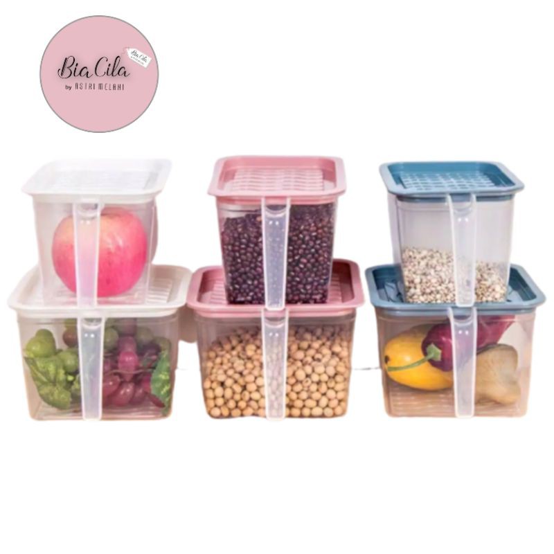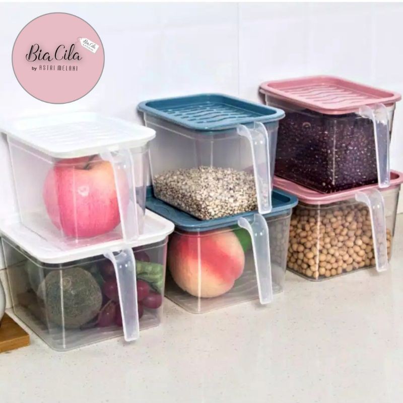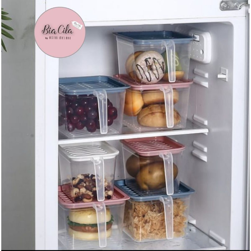 Wadah / Kotak Kulkas + Gagang + Tutup Serbaguna / Storage Food Box Organizer