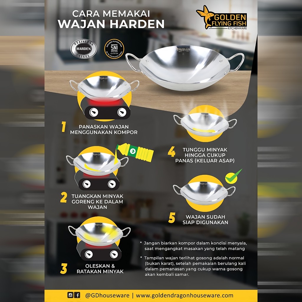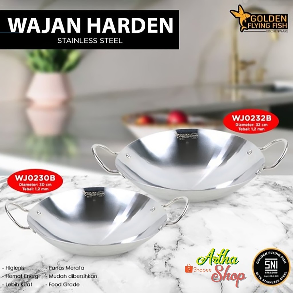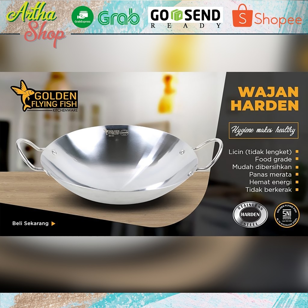 Wajan Golden Flying Fish Harden Wajan 36cm Stainless steel Wajan Anti Lengket Wok Stainless Steel