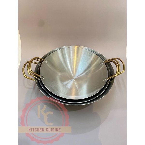 Wajan Kuali Penggorengan anti Lengket Kecil Gagang Emas Stainless Steel