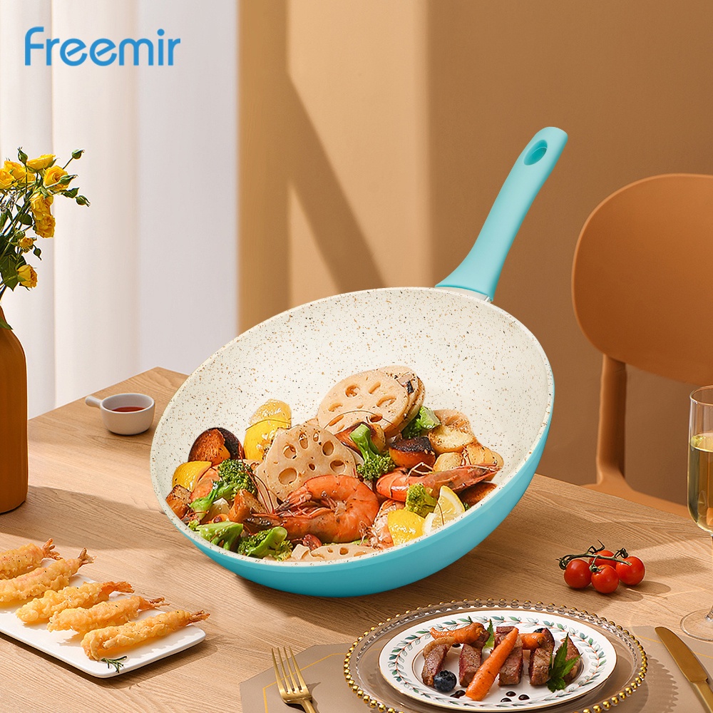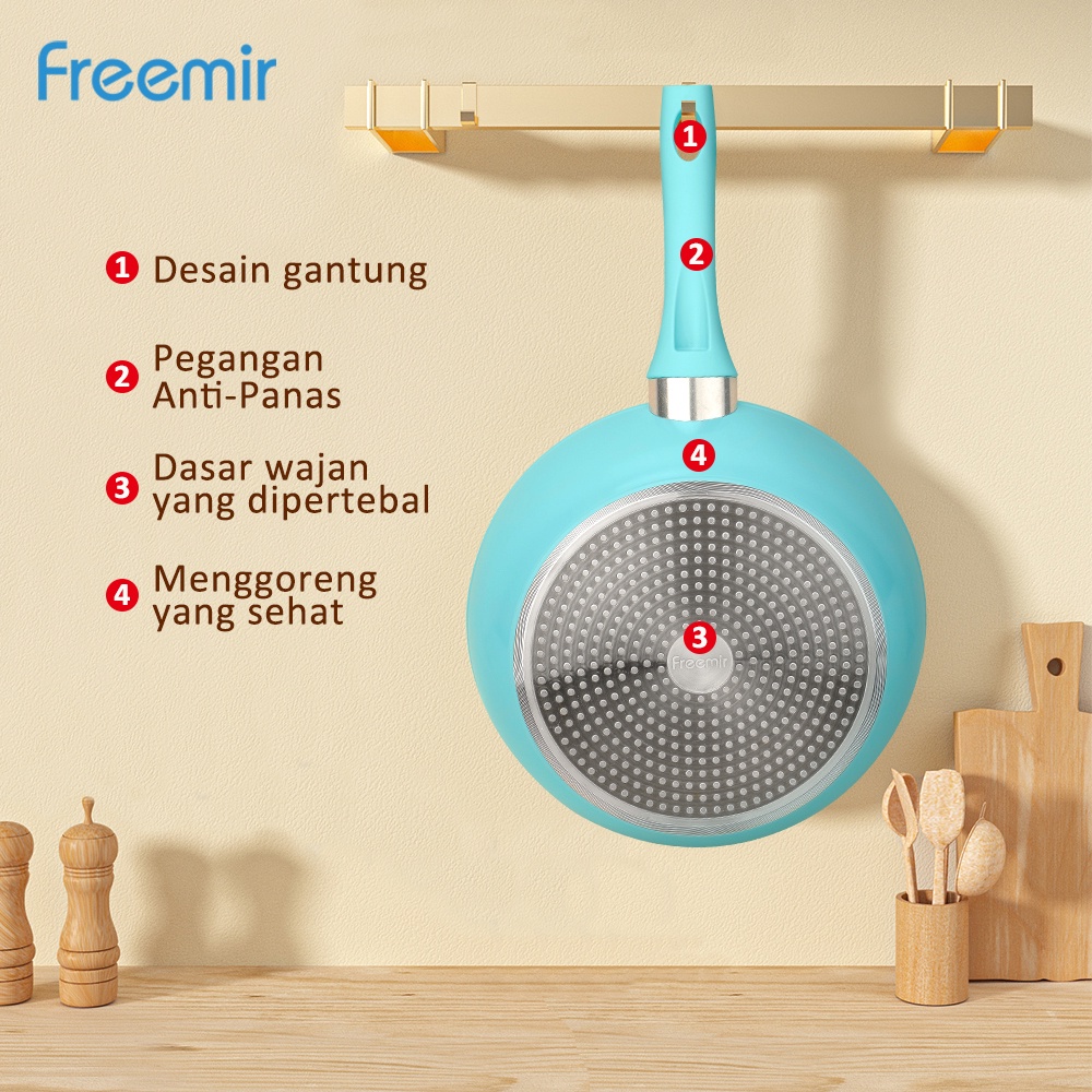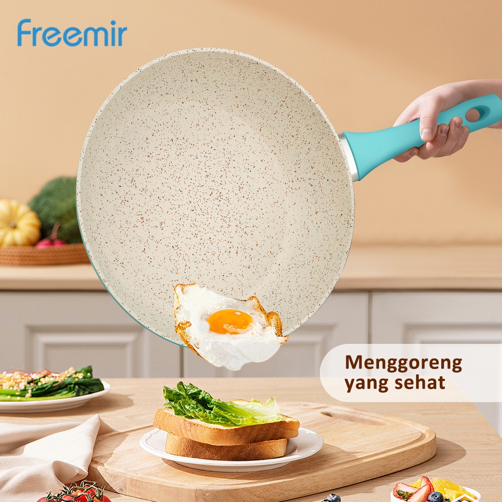 [CELARANCE] freemir Wajan Penggorengan 26 cm Anti Lengket Wok Besar Keramik Marble Biru