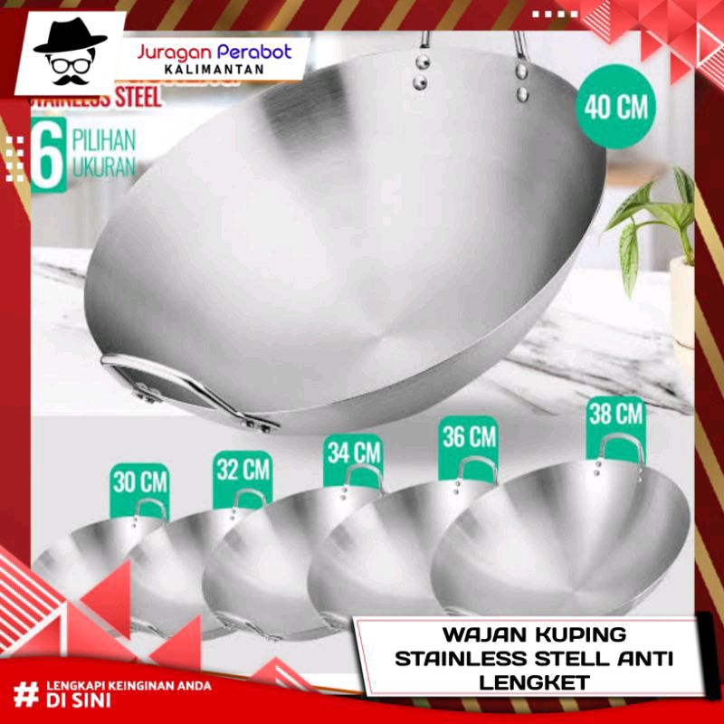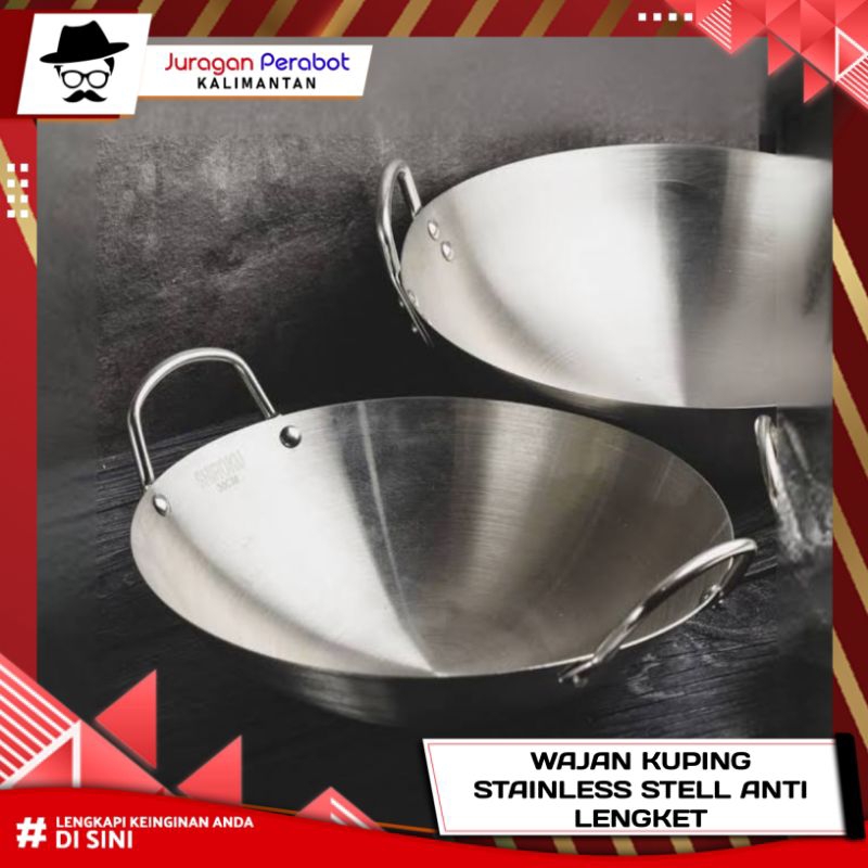 Wajan Stainless Anti Lengket Happy Fun / Wajan Stainless Berbagai Ukuran / Wajan Stainless Tebal 34cm / Wajan Stainless Anti Lengket 43cm