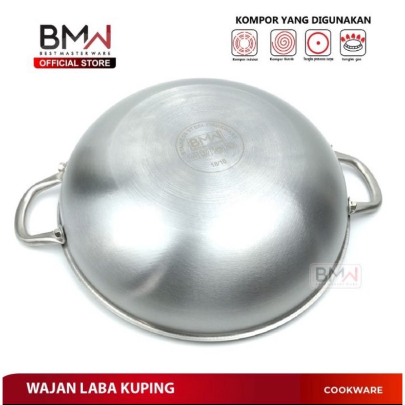 Wajan Wok Kuali Penggorengan Stainless Steel Tebal Anti Lengket