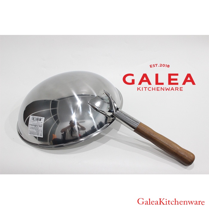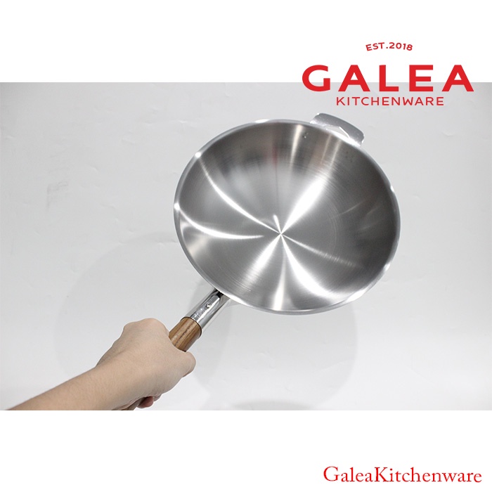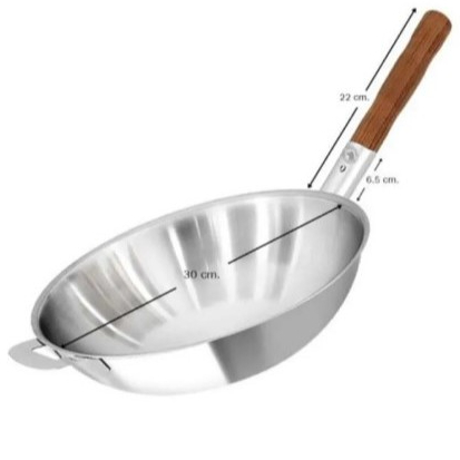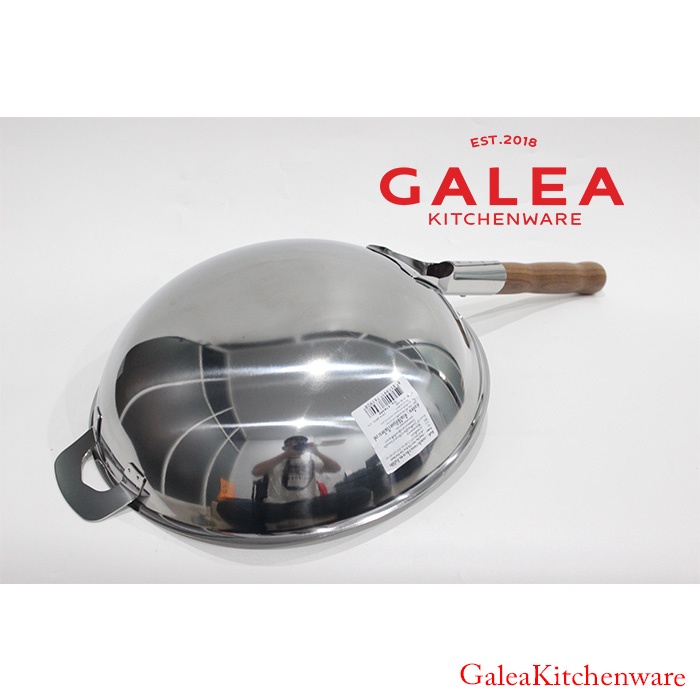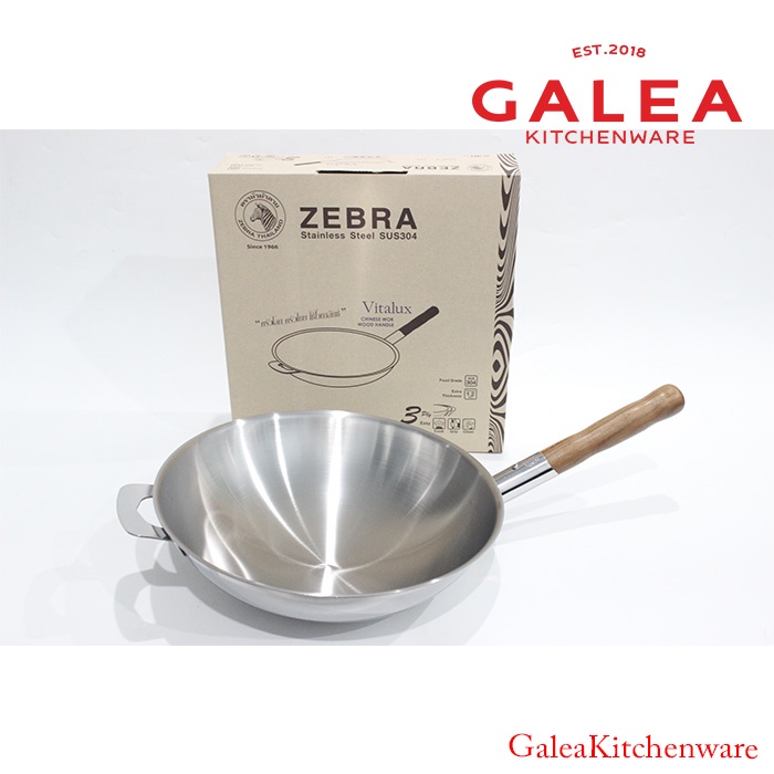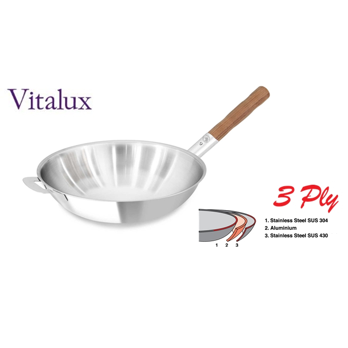Wajan Zebra Stainless / Wok Stainless / Wajan Anti Lengket / Chinese Wok Vitalux 30 Cm & 34cm 3 Ply Teak Wood 176390 & 176392