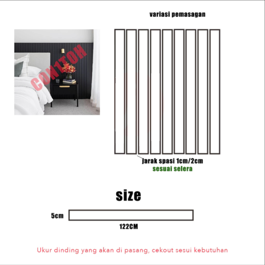 Wall Batten Wall Panel Ruang Tamu / Lis Kayu Dekorasi Dinding Wall Molding Panel Papan MDF
