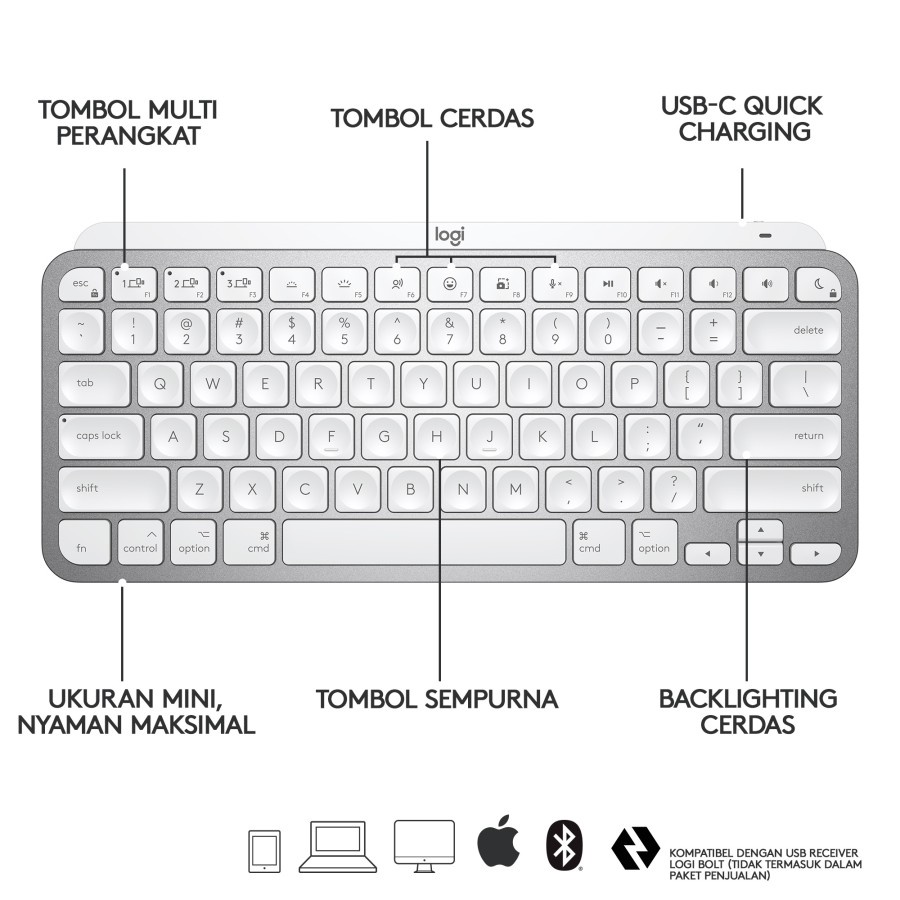 Logitech MX Keys Mini Keyboard Wireless Bluetooth Backlit Gray for Mac