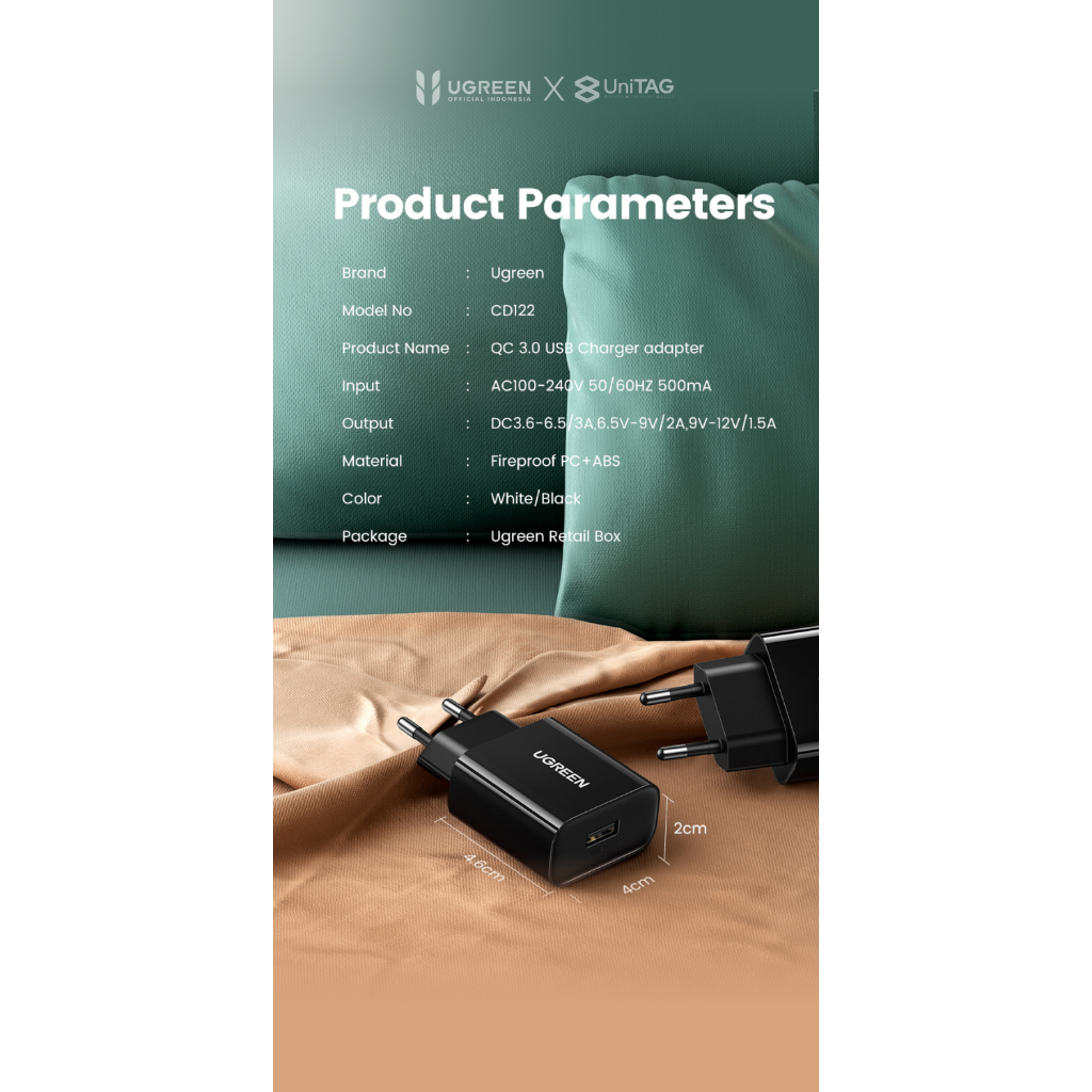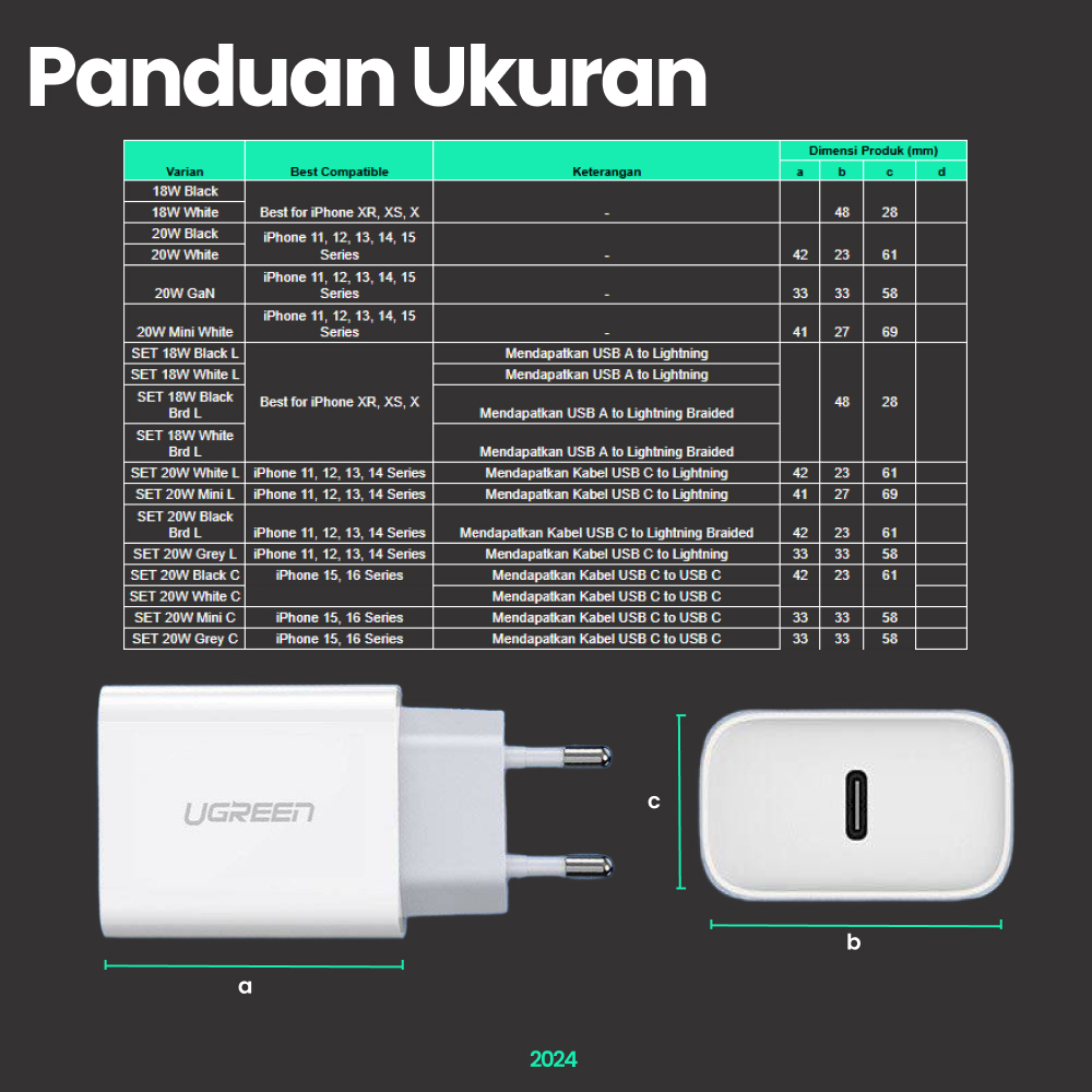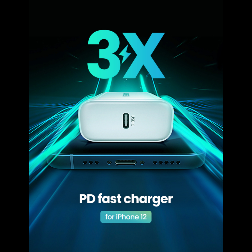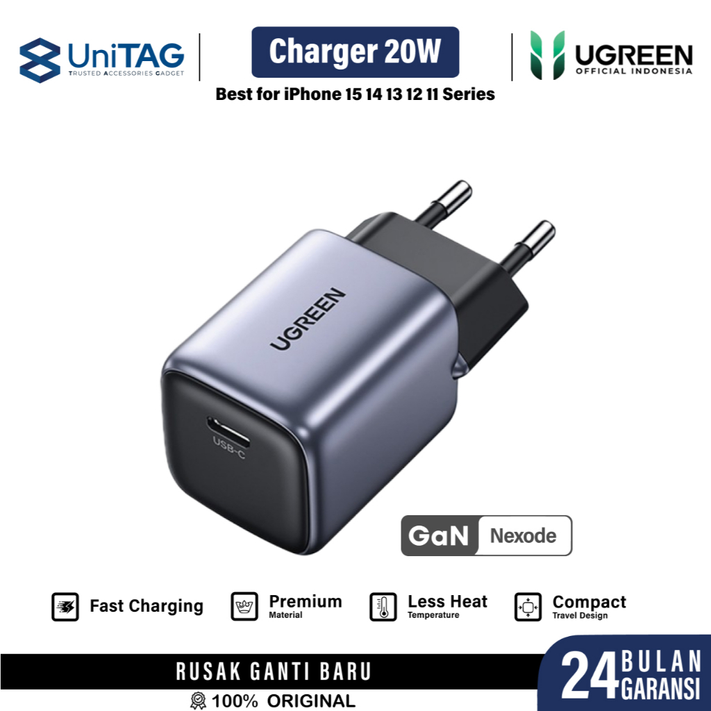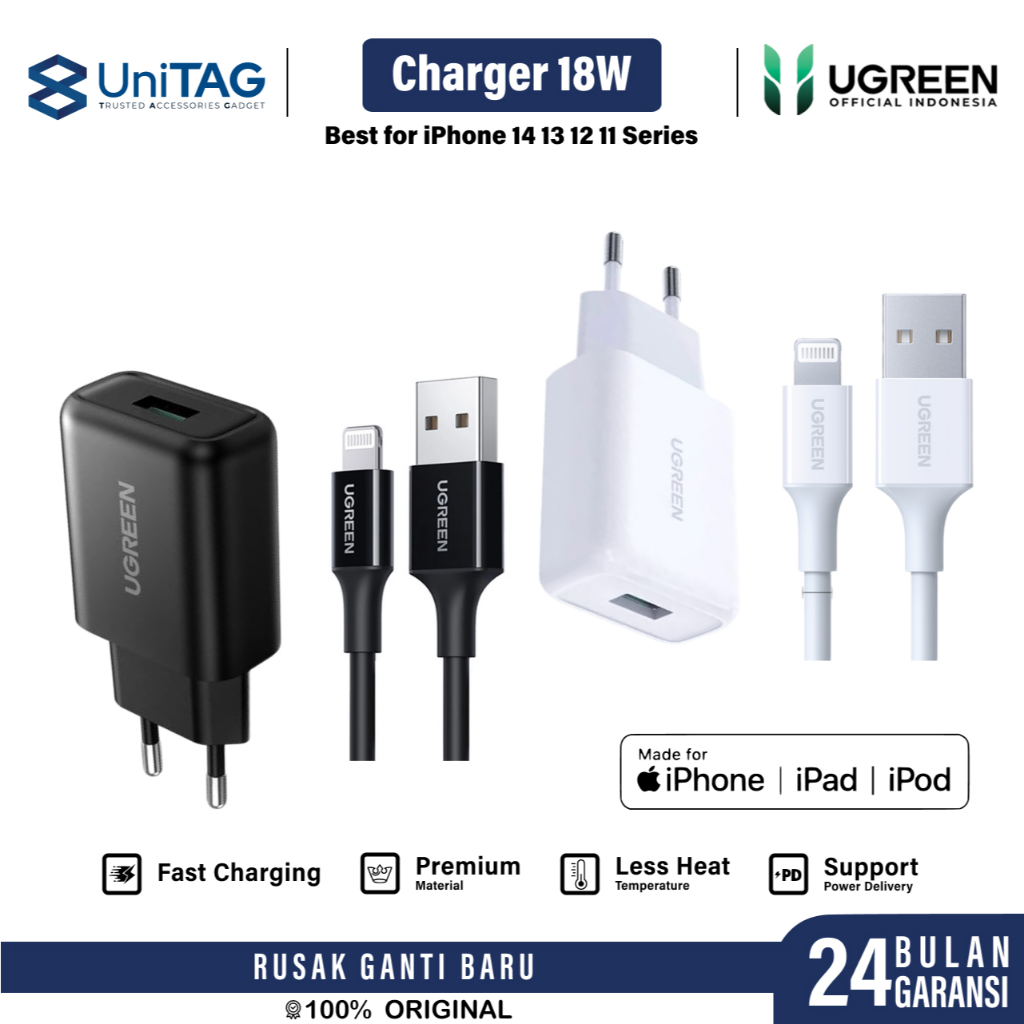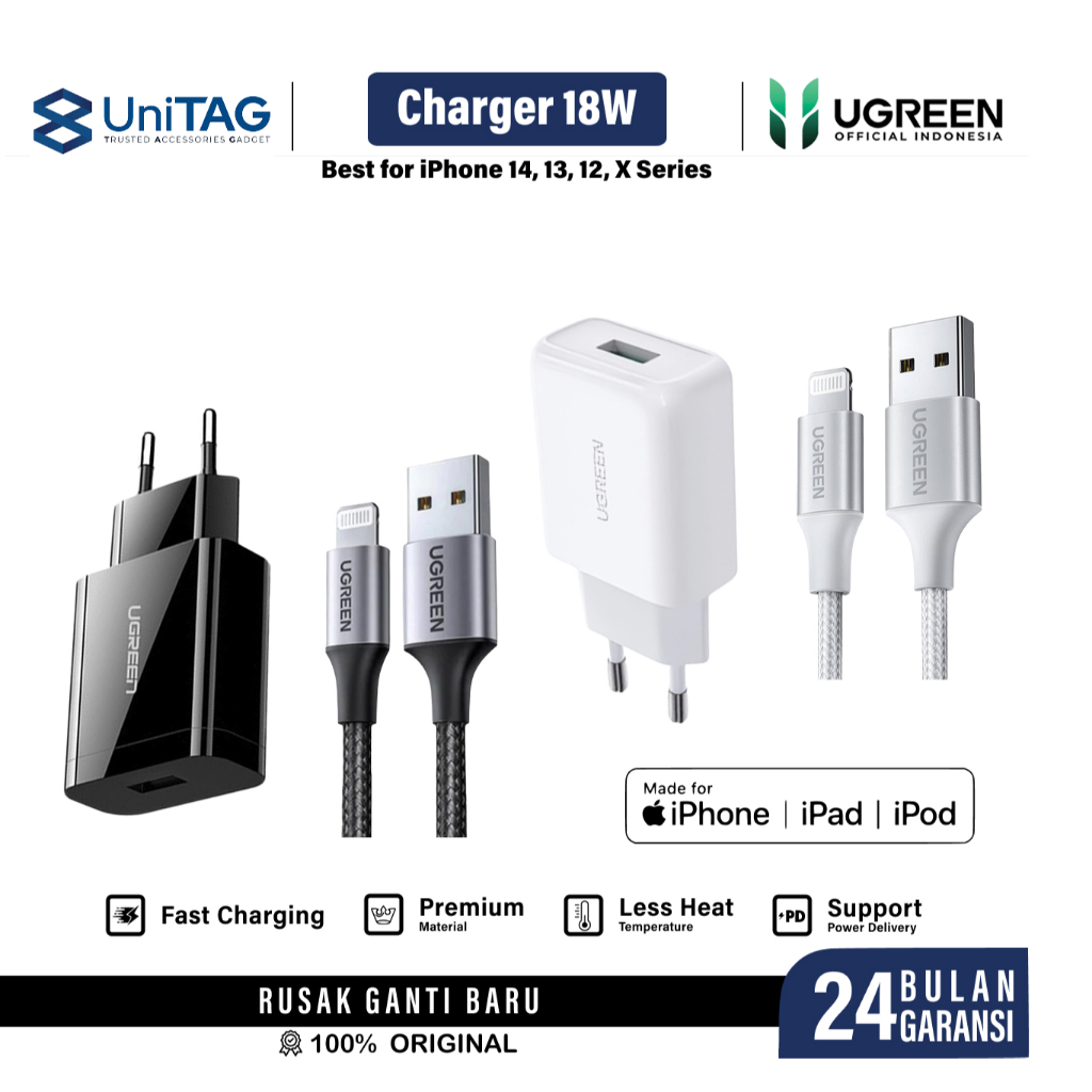 Kepala Charger for iPhone 14 13 12 11 X UGREEN PD 18W 20W USB Type C Lightning MFi Fast Charging by UniTAG