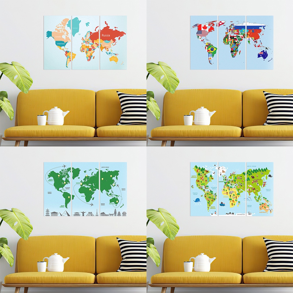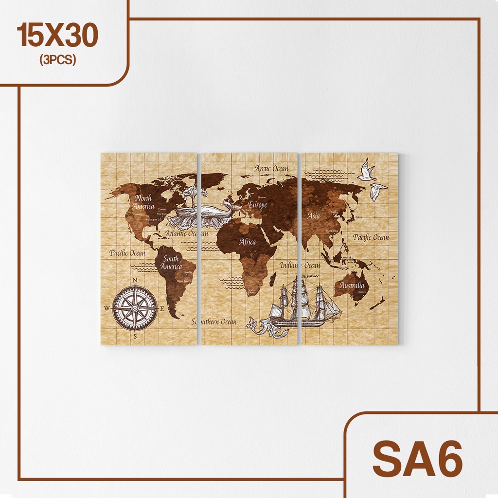 Wall Decor Poster Dinding Desain World Map Vintage Retro Hiasan Dinding Kamar Rumah - SA