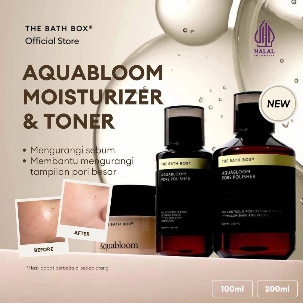 THE BATH BOX - Aquabloom Moisturizer & Toner (Oil Control, Kontrol Sebum, Kontrol Minyak, Blackhead, Komedo, Anti-Blackhead, Anti Komedo, Moisturizer Natural, Moisturizer Gel, Moisturizer Ringan, Anti Acne, Anti Jerawat, Moisturizer Natural)