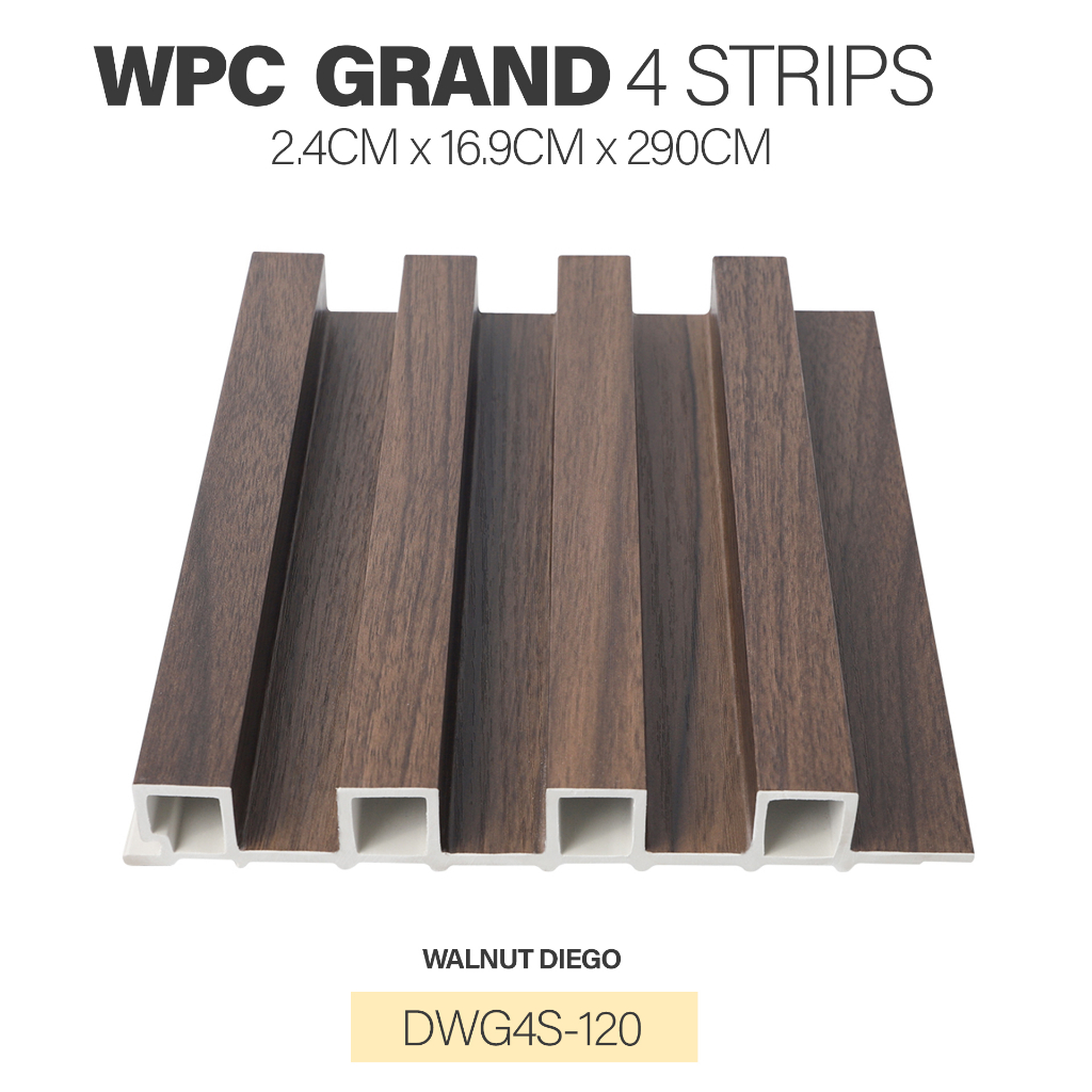 Wall Panel WPC Wallpanel PVC Woodpanel Panel Aksesoris Dinding Grand 4 Strips