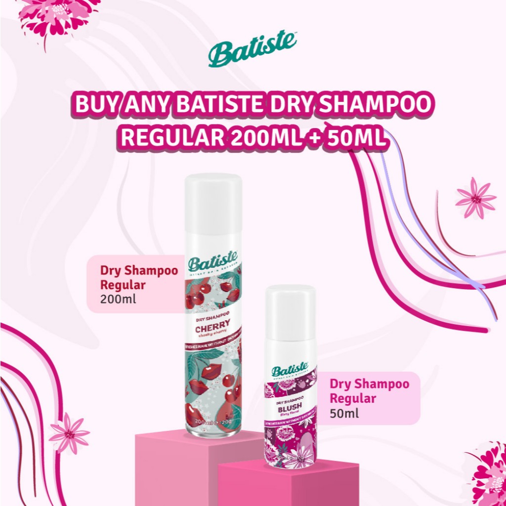 PAKET Batiste Regular Dry Shampoo 200ml + Travel Size 50ml (Shampoo Kering Tanpa Bilas) FREE Botol Minum