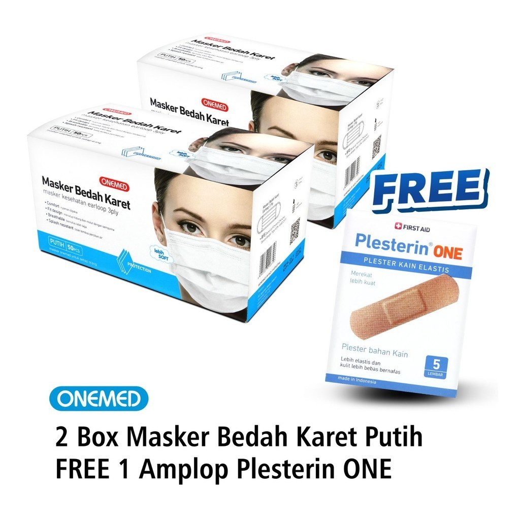ONEMED Masker Karet Medis Warna 2 Box Free Plesterin One Amplop Isi 5 Pcs OOF