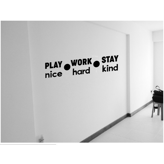 Wall Stiker Play Work Stay Hiasan Dinding Kaca Cutting Sticker Quotes Dekorasi Kantor Meja Kerja