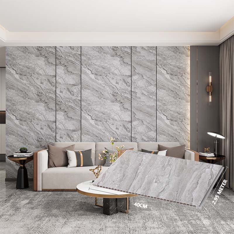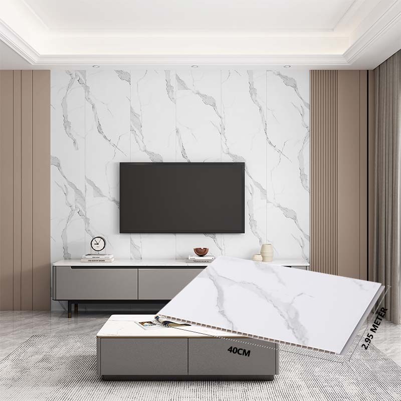 Wallboard Panel PVC / Quality Panel dinding WPC / pola marmer Dinding lebar 0.4m panjang 2.9m/Hiasan dinding kayu marmer / Wallboard WPC/ Wallboard hiasan dinding Wall Board Kayu ukuran 40 cm x 2.9 m