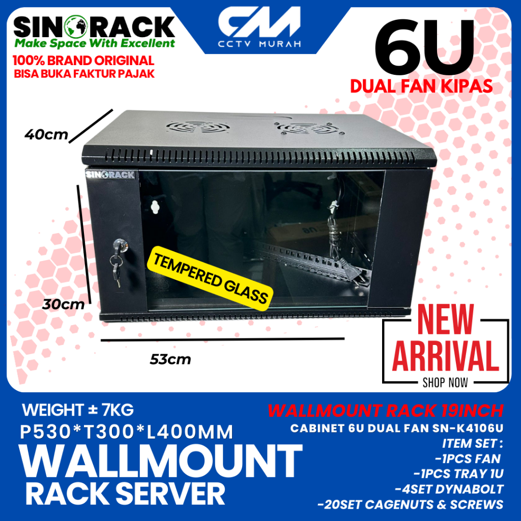 Wallmount Rack Server 6U/Rak Server Ukuran 6U Single Glass Door