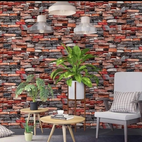 Wallpaper Dinding Batu Alam Merah Warna 45cm x 10m