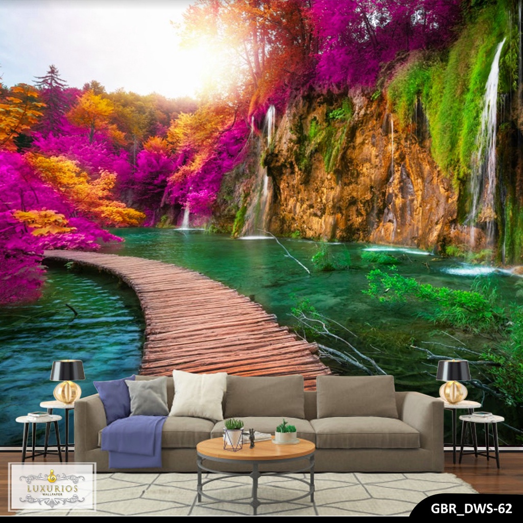 Wallpaper Dinding Custom 3D Pemandangan Alam China Walpaper Air Terjun Wallmural Pegunungan Sticker Pohon