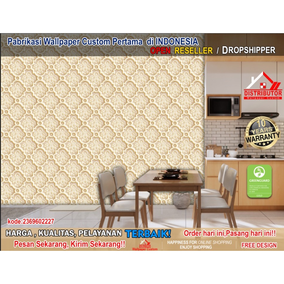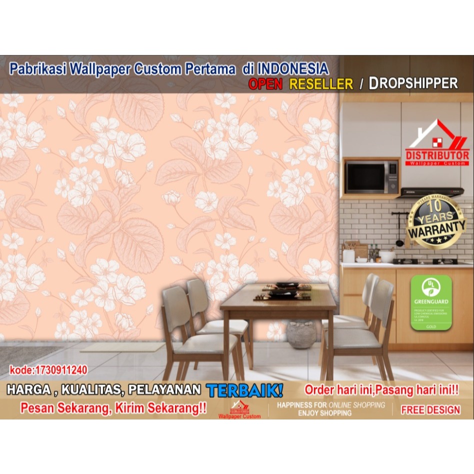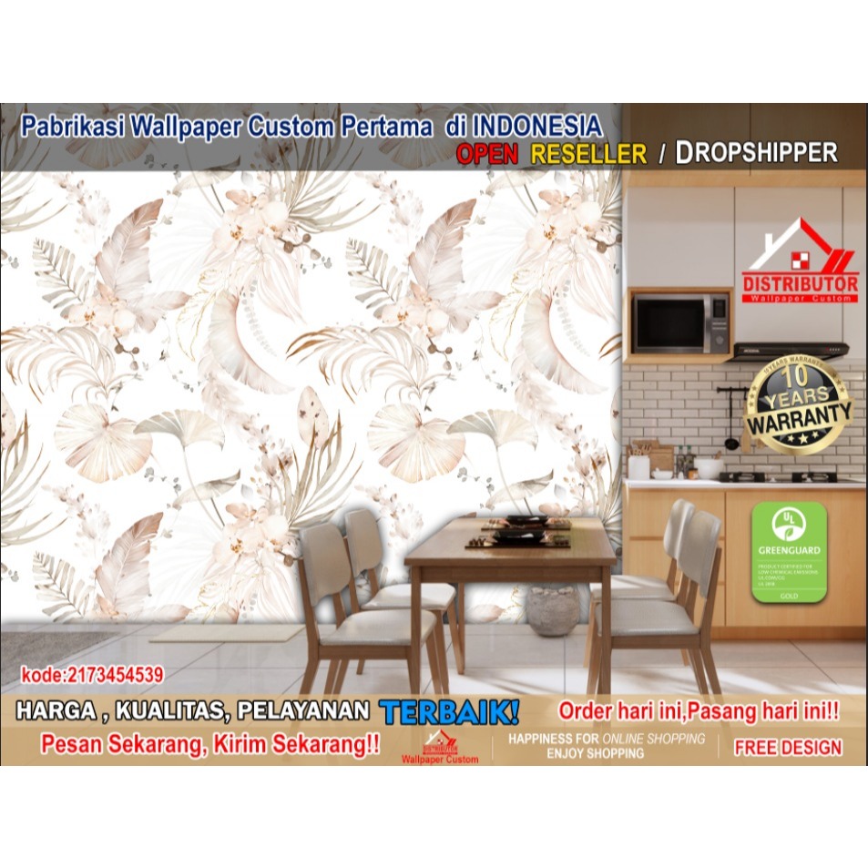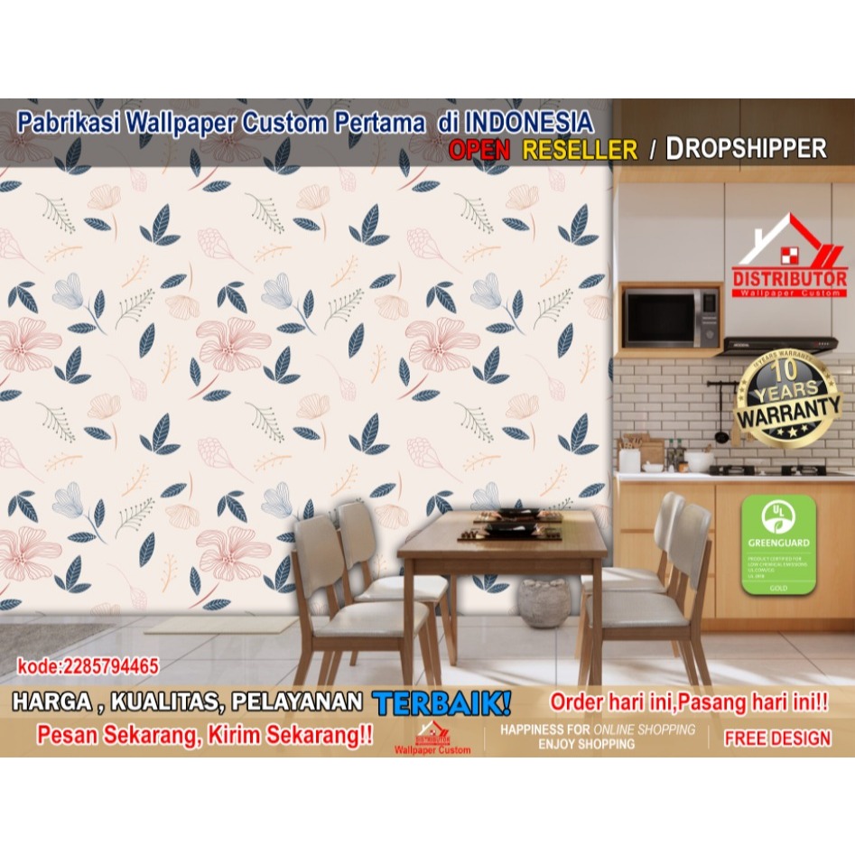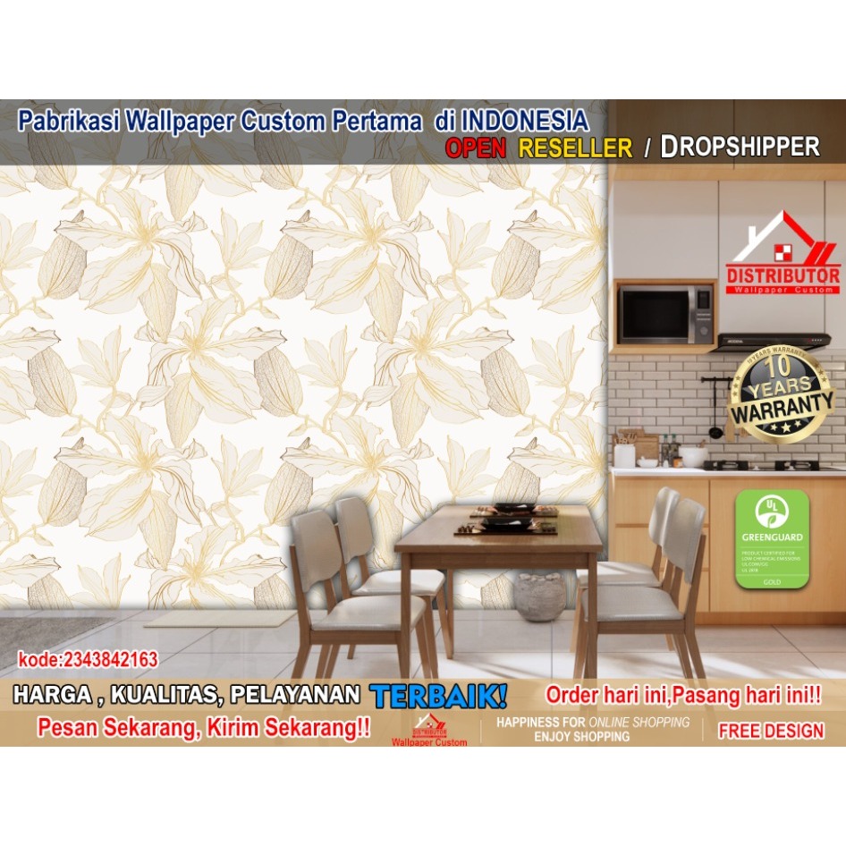 Wallpaper Dinding Custom 3D Tema Leaf/Flowers | Bunga | Daun | Ruang Makan | Dining Room | Mural Pattern | Wallsticker | Wallpaper Dinding