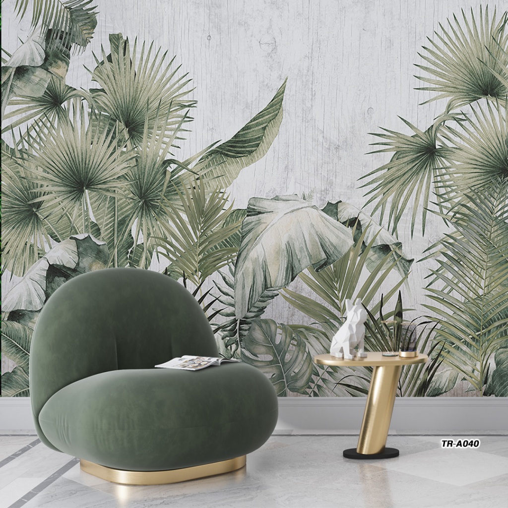 Wallpaper Dinding Custom Tropical | Wallpaper Kamar Mandi Motif Hutan dan Hewan | Natural Aesthetic Wallcovering HD | Custom Size | Atarvio