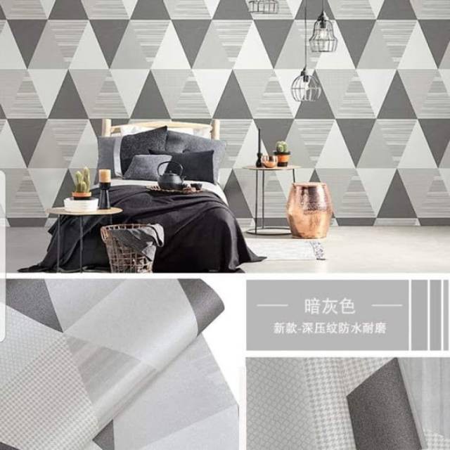 Wallpaper Dinding Kamar Tidur Segitiga Abu Putih Walpaper Stiker Pelapis Triplek Dekorasi Rumah
