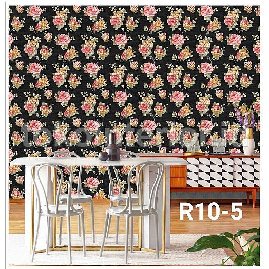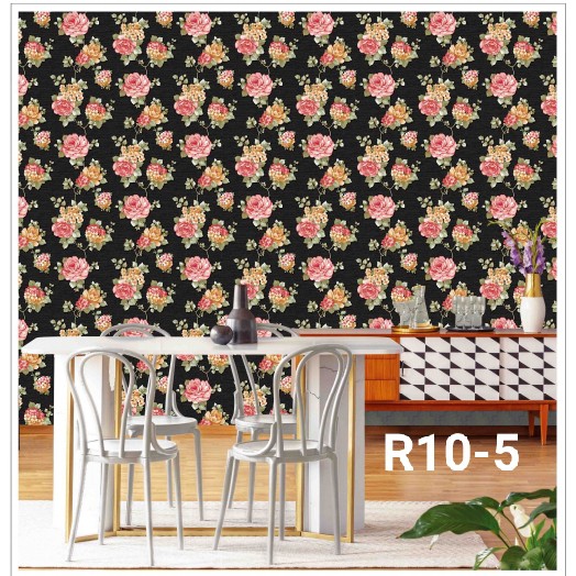 Wallpaper Dinding Korea Hitam Bunga Mawar Cantik Elegant - 15m - Favorita R10