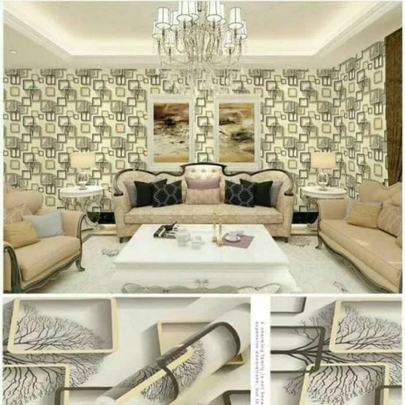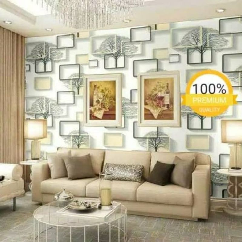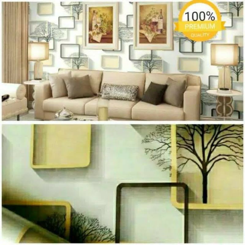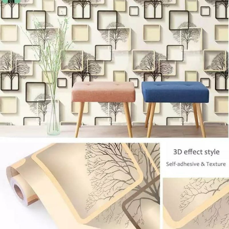 Wallpaper Dinding Kotak Sticker Dinding Kotak Krem 3D
