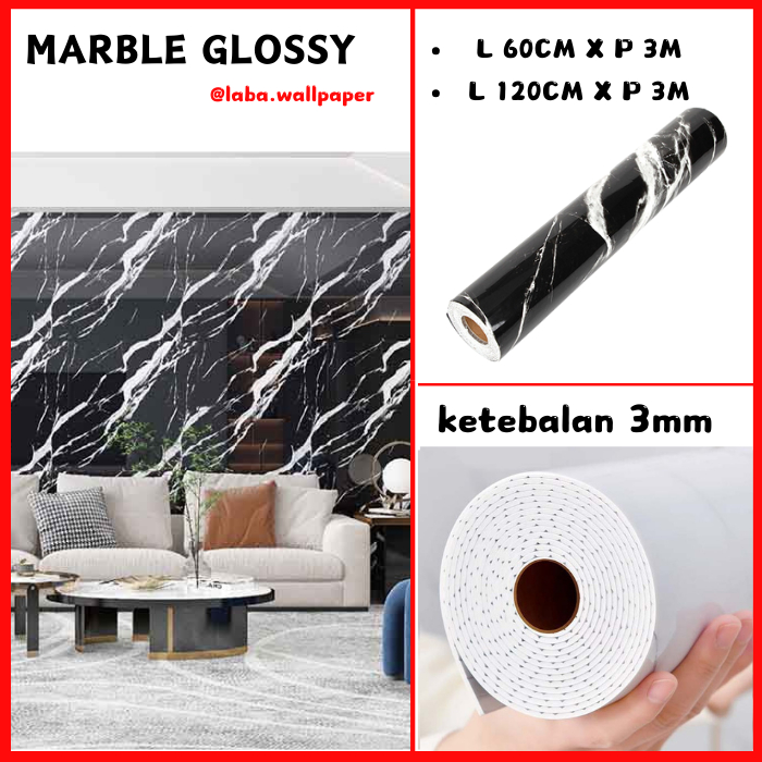 Wallpaper Dinding Marmer Granit Glossy Anti Air Dekorasi Backdrop TV Tebal 3mm Ukuran 3m x 60cm