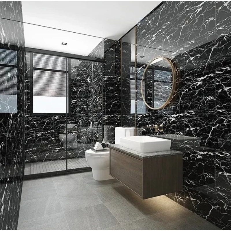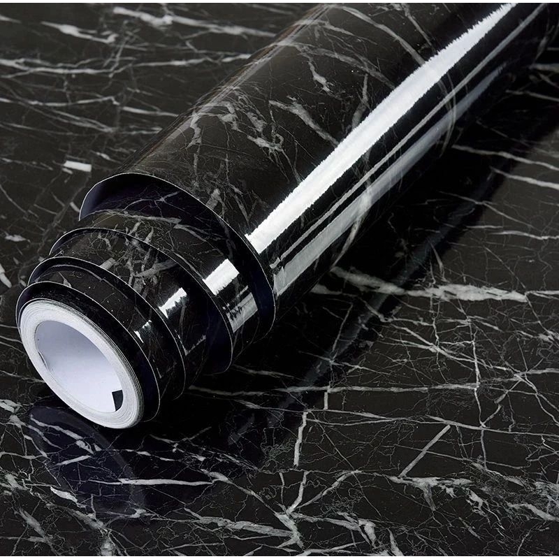 Wallpaper Dinding Marmer Keramik Hitam Ukuran 45 Cm x 10 Meter
