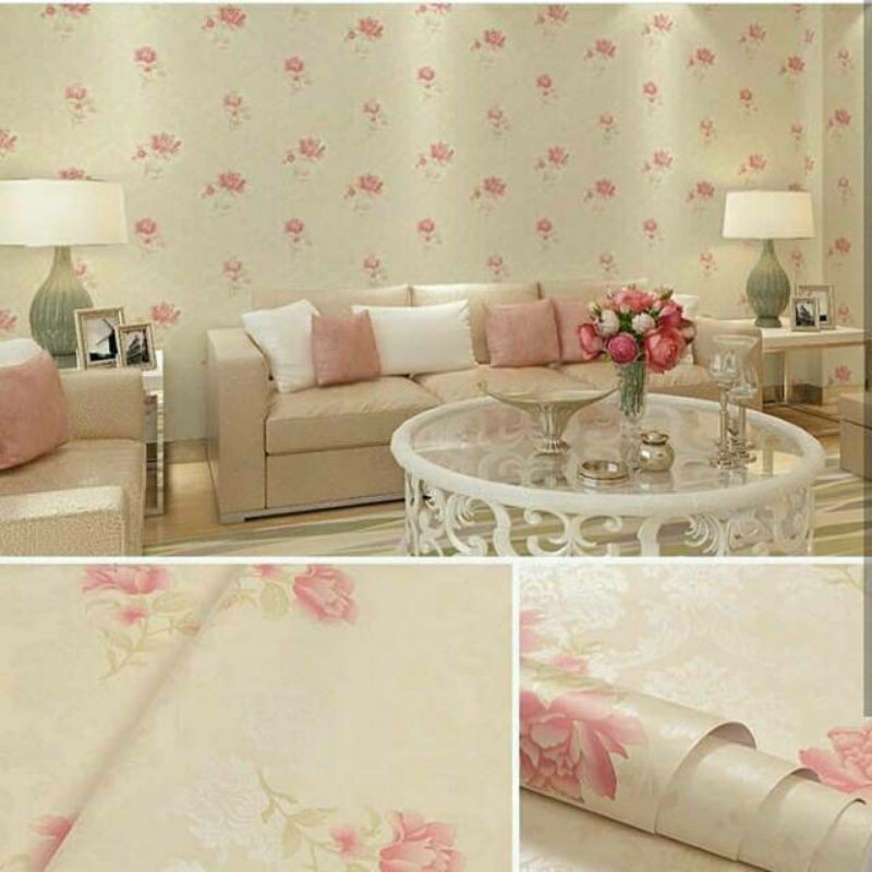 Wallpaper Dinding Motif Bunga Pink 10Meter x Lebar 45Cm