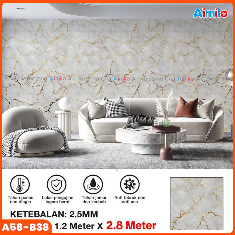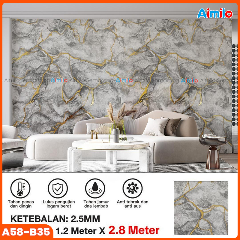 Wallpaper Dinding Motif Vinyl Roll Marble Foam Marmer Sticker Kamar Dekorasi PET 120 x 280cm Wall Paper Marmer Waterproof