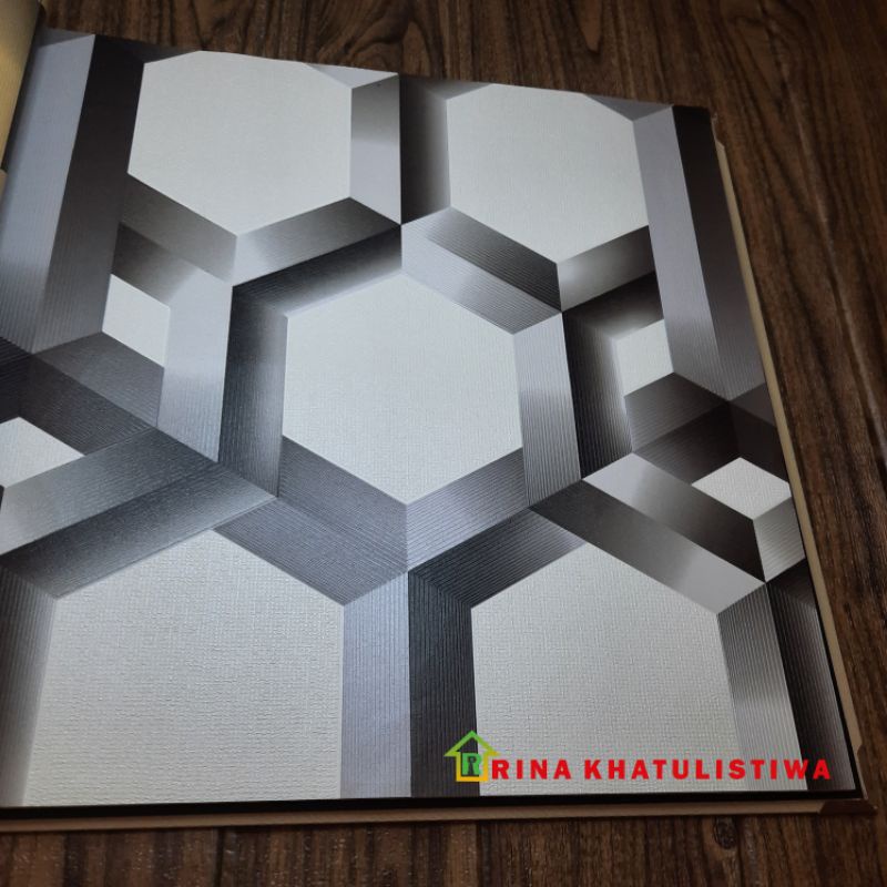 Wallpaper Dinding Premium Motif Hexagonal 3D | Wallpaper Vinyl Timbul Minimalis | Wallpaper Dinding Kamar Terbaru | Wallpaper Dinding Hitam Putih Ukuran L 53cm x P 10m